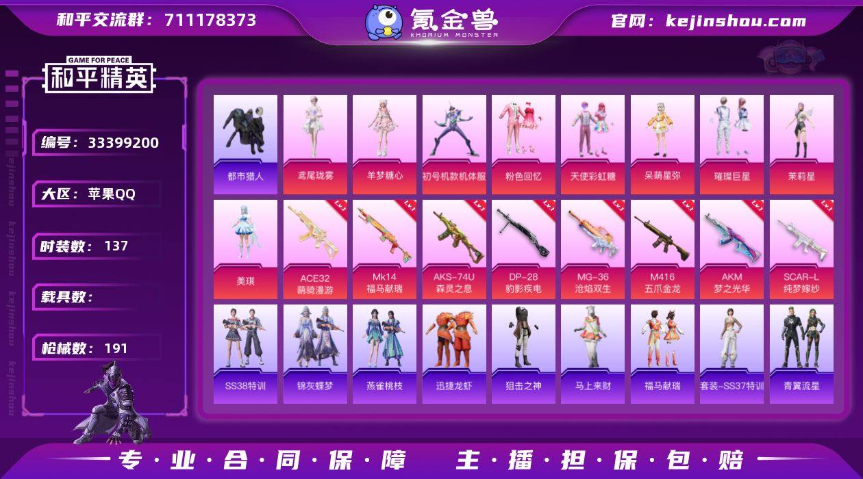 可二次【紫螳螂都市猎人M4满级五爪金龙AKM梦之光华9粉装8特效枪 秒换绑不用等】 苹果Q区-57239热力值-137套装-191枪皮 【1稀有】 都市猎人【9粉装】 初号机款机体服(紫螳螂) 天使彩虹糖 粉色回忆 鸢尾珑雾 茉莉星 呆萌星弥 璀璨巨星 角色-美琪 角色-羊梦糖心【8特效枪】 M416-五爪金龙(7级) AKM-梦之光华(6级) AKS-74U-森灵之息(5级) Mk14-福马献瑞(4级) ACE32-萌骑漫游(3级) SCAR-L-纯梦嫁纱(5级) DP-28-豹影疾电(4级) MG-36-沧焰双生(5级)【162热门】 迪迦奥特曼 浪漫天命 都市猎人(蓝口罩) 狂沙舞者 白色伏地魔 SS27特训 SS25特训 SS24特训 SS23特训 SS22特训 M24-未来战士 M24-歌者泠鸢 2B战斗服款 SCAR-L-玉兔迎春 GROZA-田园牧歌 M762-天降萌叽 Mk47-乌木金纹 SKS-糯团青竹 Mini14-旋转彩虹 UZI-娇憨猪猪 UMP45-蓝色火焰 DBS-彩虹符号 M249-彩虹符号 MG3-幻世战舞者 AKM-星之彼岸 SCAR-L-甜蜜誓约 M416-暗夜行者 鹰眼刺客 破蛋小黄鸡 长空猛禽 虚音幻奏 夏日倾情 甜心亚梦 特训学院 青年教官 平底锅-五爪金龙 明日香款战斗服 妙红点点 懵萌河马 魅力单车 猎鹰 黎明保卫者 蓝色运动 橘黑制服 竞技达人朋克 黄色运动 漫步者 黑色伏地魔 和煦暖阳 风暴特警 粉红小猪 平底...
