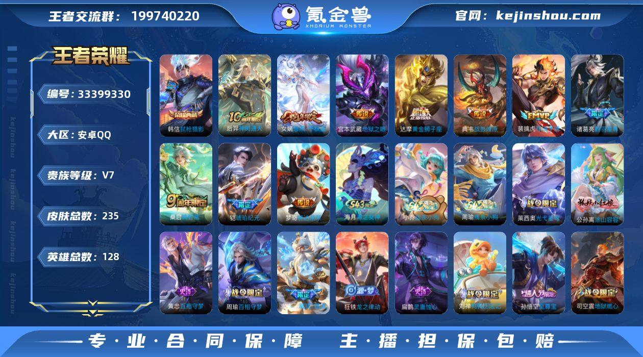 无二次-安卓Q-V7-永恒钻石III段位-128英雄-235皮肤-1典藏皮肤-10传说-62史诗HZ2641212 【英雄全皮】:孙权全皮,空空儿全皮 【荣耀典藏】:韩信弑枪猎影 【传说皮肤】:后羿神树通天,女娲愿照千秋盛,裴擒虎祥瑞亨通,桑启鸣野蒿,典韦战鼓燎原,铠琥珀纪元,诸葛亮鹤羽星尊,达摩黄金狮子座,梦奇胖达荣荣,宫本武藏地狱之眼 【限定皮肤】:蒙犽顽岩魄,姜子牙天穹之誓,狄仁杰阴阳师,赵云皇家上将,孙尚香蔷薇恋人,高渐离死亡摇滚,芈月白晶晶,元歌无心,狄仁杰魔术师,狄仁杰万华元夜,达摩沙漠行僧,项羽海滩派对,程咬金演武夺筹,孙悟空至尊宝,李元芳云中旅人,钟馗驱傩正仪,鬼谷子原初探秘者,鬼谷子五谷丰年,诸葛亮鹤羽星尊,百里玄策原初追逐者,裴擒虎擒涛扼浪,上官婉儿梁祝,鲁班大师探海日志,桑启海盐诗旅,司空震地狱燃心,阿古朵江河有灵,张良古海寻踪,高渐离燃音魔法,鬼谷子天穹祈灯,铠琥珀纪元,姬小满妄想食味,沈梦溪龙舞盛年,鲁班七号蔬乡物语,刘邦剑破天穹,程咬金群星魔术团,周瑜熔金海岸 【年限皮肤】:女娲愿照千秋盛 【赛季限定】:鬼谷子原初探秘者,狄仁杰万华元夜,程咬金演武夺筹,钟馗驱傩正仪,达摩沙漠行僧,李元芳云中旅人,...