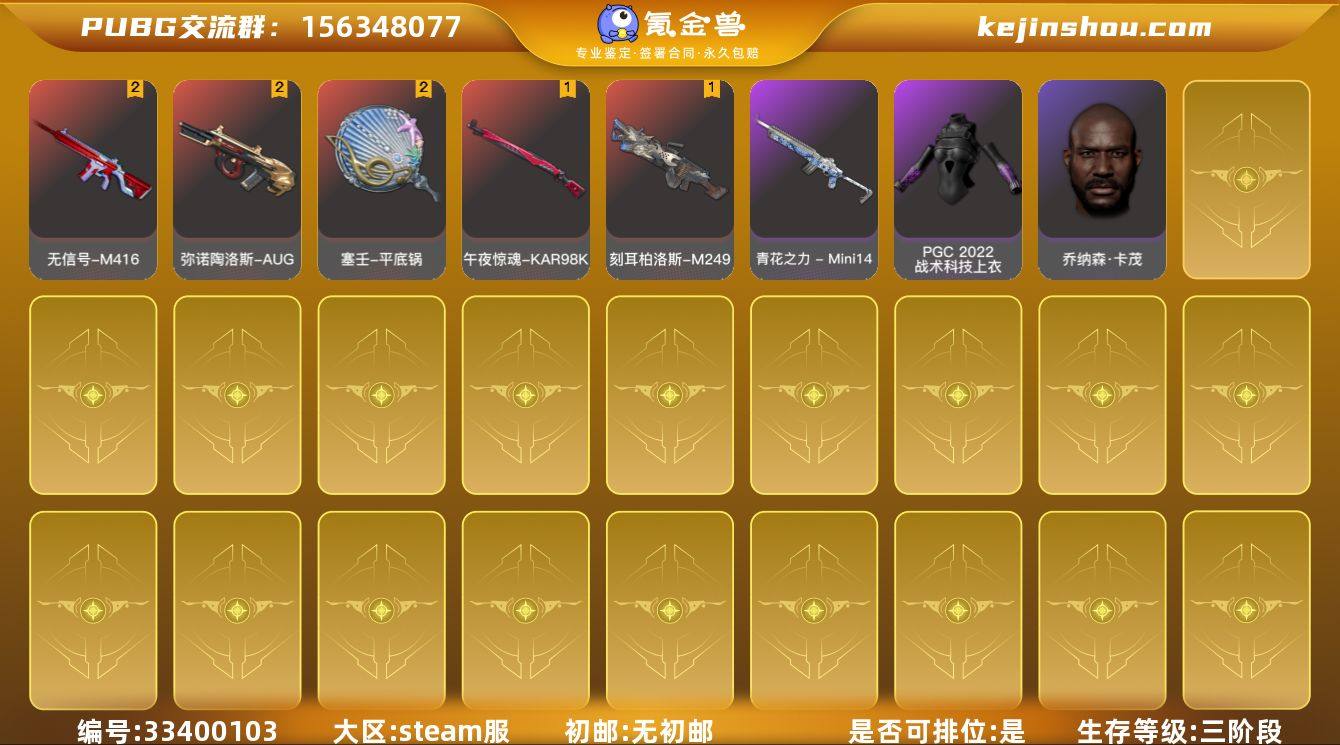 GJD13833 生存500级可排位/10级美杜莎-BerylM762/2级无信号-M416/2级弥诺陶洛斯-AUG/2级妖魔之触-ACE32/1级刻耳柏洛斯-M249/1级暗影之主-MK12/1级午夜惊魂-KAR98K/2级塞壬-平底锅/品红色烟雾弹/黑鬼/双马尾/脏辫/丸子头/金面具/红面具/恶魔角/发光手臂//小火龙T/拉风龙-风华套装/拉风龙-勇往套装/星魂白运动/冰域之主套装/Pigff战术突击夹克/绿东南亚/小黄鸭套/白熊鞋/粉色电磁包/胜利密室/ 0BG4TI号 无排名, 生存等级1059, 名誉等级3, 金标数量2, 聚合物8176, 枪皮数量58, [成长型] 无信号 - M416[2级], [成长型] 弥诺陶洛斯 - AUG[2级], [成长型] 美杜莎 - Beryl M762[10级]