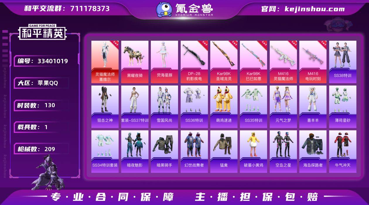 【3级红装5特效枪1粉装1载具 秒换绑不用等】 苹果Q区-63949热力值-130套装-209枪皮 【1红装】 灵猫魔法师-塞维尔(3级)【1载具】 黑曜夜骑【1粉装】 角色-荧海星豚【5特效枪】 Kar98K-圣域龙灵(3级) M416-灵猫魔法师(3级) Kar98K-巳巳如意(5级) M416-电玩时刻(5级) DP-28-豹影疾电(5级)【185热门】 金羽特工 军刀雅典娜 团圆交子 瑞龙福将 豚鼠丹丹 SS9特训 SS8特训 SS27特训 SS26特训 SS25特训 SS24特训 SS23特训 SS22特训 GROZA-乌木金纹 SCAR-L-玉兔迎春 M762-天降萌叽 M762-彩虹符号 Mk47-乌木金纹 UZI-娇憨猪猪 UMP45-蓝色火焰 MG3-幻世战舞者 AKM-虎虎生威 AKM-星之彼岸 M416-蓝色火焰 GROZA-异彩先驱 破蛋小黄鸡 长空猛禽 异彩先驱 虚音幻奏 甜心亚梦 青涩时光 骑行爱好者 牛气冲天 霓虹极客 魅力单车 黎明保卫者 漫步者 海岛探路者 粉红小猪 M762-瑞龙福将 AC-VAL-宇宙意志 GROZA-紫矿核心 顶瓜瓜 M249-无面战甲 冰河战士 MG-36-薄荷星砂 GROZA-福马献瑞 恋语绒绒 SS34特训 蜜獾-鸡智如我 S1897-荧海星豚 时希公主 SS12特训 怀庆长公主 SS18特训 大橘大利 SS13特训 SS14特训 SS16特训 SS17特训 彩虹兔 SS19特训 SS20特训 SS21特训 蓝冰羽 SS29特训 SS30特训 ACE32-冰晶...