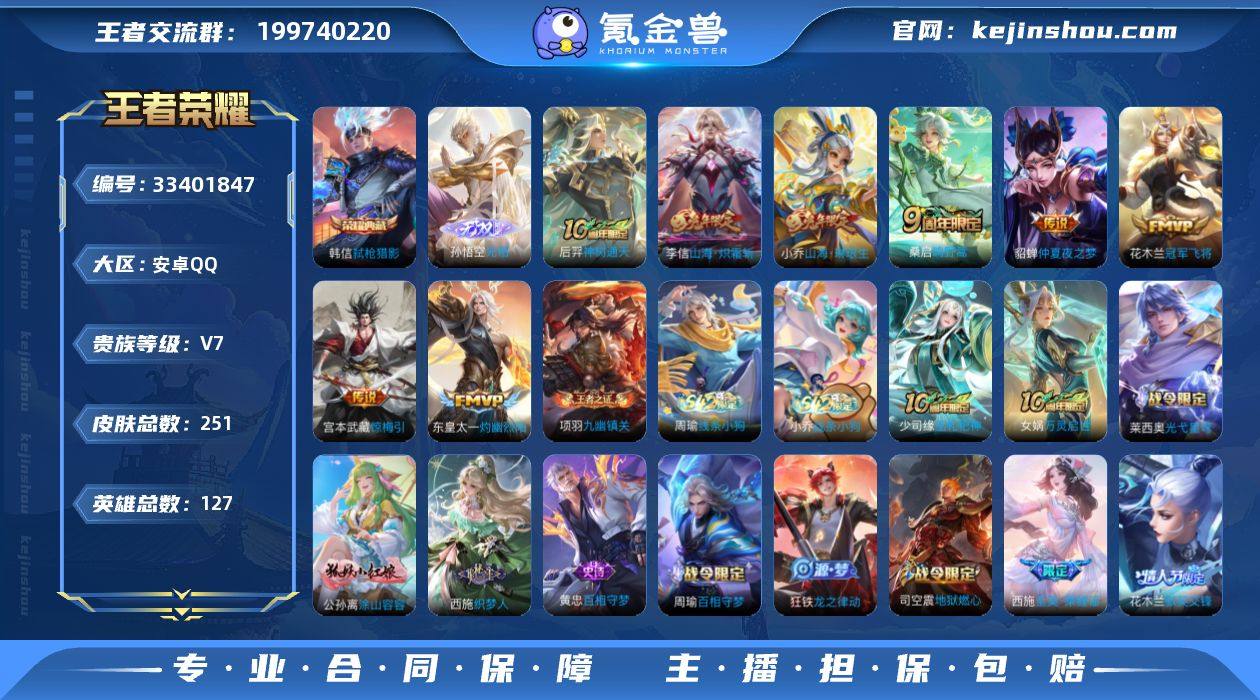 编号A00777 可二次 v7 251皮肤 1典藏 1无双 12传说 1星传说(金色仲夏夜)1传说天幕(墨染江湖)无相 弑枪猎影 踏浪归 神骥·聚万邦 神骥·赴朔漠 山海·琳琅生 山海·炽霜斩 默契交锋 前尘 吕布-末日机甲 踏浪烽翎 惊梅引 西施-至美乘鲤谣 灼幽烈阳 九幽镇关 罗刹妄海 鸣野蒿 神树通天 鹤鸣心笺 无限星赏官 仲夏夜之梦 冠军飞将 百相守梦 织梦人 涂山容容 幽灵船长 逐梦之星