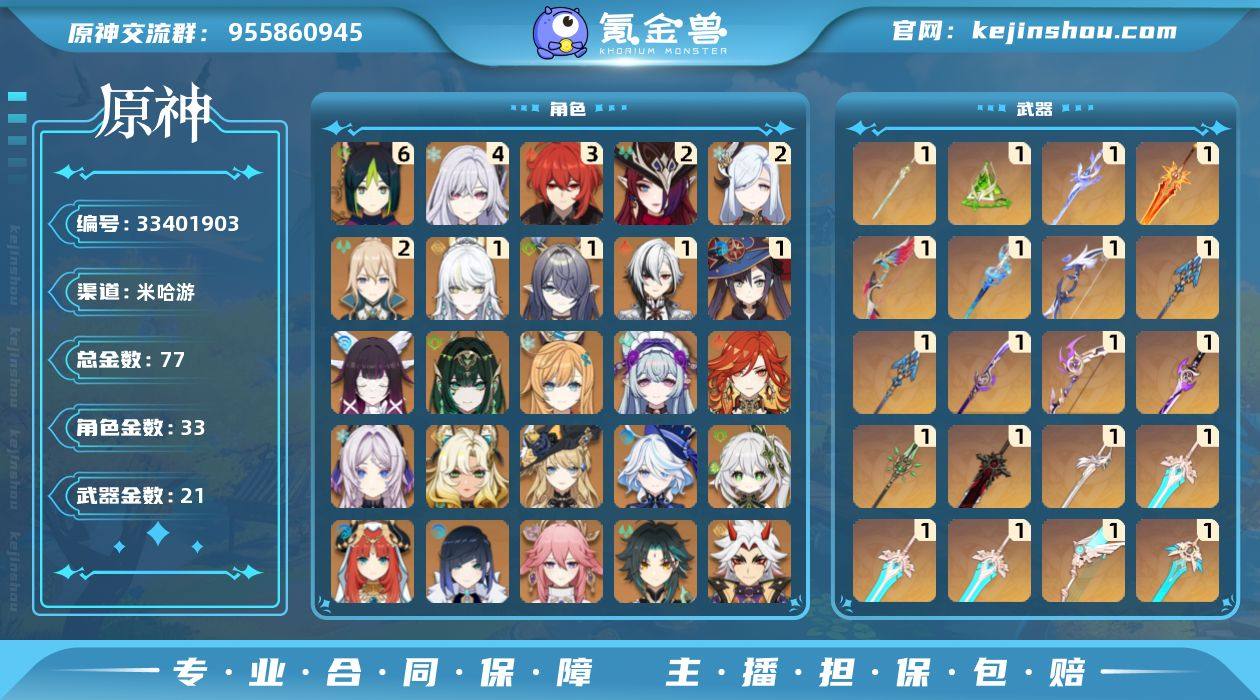 原神官服天空岛号,5年多一手自玩,退坑出 账号干净无开挂违规,未绑TAP/PSN,只绑本人手机号和邮箱(不送邮箱) 可永久换绑手机号,换绑后手机号全归你,我永不找回 核心高命:6命提纳里、4命丝柯克、2命申鹤,五星34个,热门主C全有,五星武器21把,热门皮肤5款 练度拉满,圣遗物SSS/SS评级,深渊随便满星 安全有保障,只协助换绑手机号,换绑后账号密码即发 虚拟商品,换绑成功不退款 价格可聊,