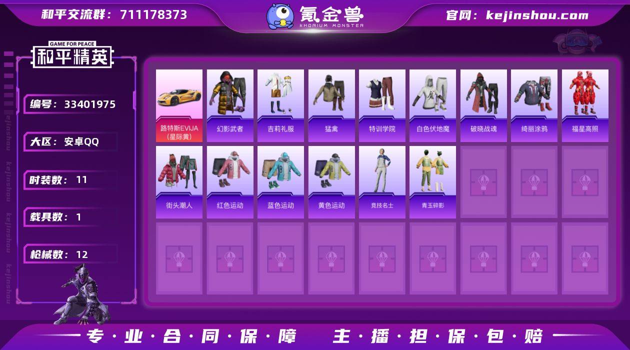 QY481 素材号 1载具 路特斯EVIJA(星际黄) 一体暗区仓库总值35M5金枪9945k科恩币 2太阳号 安卓Q区-4183热力值-15套装-12枪皮【优质载具皮肤】 路特斯EVIJA(星际黄)【稀有武器皮肤】: M16A4-幻世战舞者 AUG-天降萌叽 QBZ-彩虹符号 蜜獾-天降萌叽 UZI-炫彩节奏 MP5K-乌木金纹 P90-乌木金纹 P90-玩趣呆呆 S686-红色方程式 S12K-玩趣呆呆【其他套装】: 福星高照 青玉碎影 特训学院 红色运动 黄色运动 蓝色运动 白色伏地魔 竞技名士 猛禽 街头潮人 幻影武者 绮丽涂鸦 破晓战魂 吉莉礼服【优质降落伞】: 普通降落伞