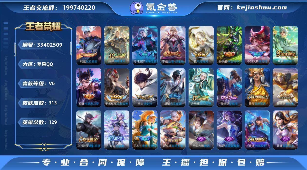 苹果Q-V6-永恒钻石III段位-129英雄-313皮肤-1典藏皮肤-11传说-79史诗 【英雄全皮】:敖隐全皮 【荣耀典藏】:韩信弑枪猎影 【传说皮肤】:后羿神树通天,桑启鸣野蒿,李信山海炽霜斩,李白诗剑行,不知火舞绯月行,马可波罗深海之息,镜炽阳神光,干将莫邪久胜战神,虞姬云霓雀翎,貂蝉仲夏夜之梦,孙尚香末日机甲 【限定皮肤】:白起狰,蔡文姬夏日便利店,虞姬夏日便利店,姜子牙天穹之誓,李白谪仙醉月,狄仁杰阴阳师,虞姬凯尔特女王,赵云皇家上将,赵云百木心枪,庄周蜃楼王,庄周高山流水,高渐离死亡摇滚,钟无艳超时空战士,孙膑妖精王,扁鹊炼金王,白起夜都怪侠,芈月重明,元歌无心,夏侯惇匿光决锋者,甄姬游园惊梦,甄姬落雪兰心,曹操烛龙,典韦穷奇,典韦蓝屏警告,马可波罗暗影游猎,马可波罗深海之息,狄仁杰魔术师,狄仁杰万华元夜,达摩沙漠行僧,项羽海滩派对,老夫子醍醐杖,程咬金演武夺筹,王昭君午后时光,兰陵王金庭之子,花木兰青春决赛季,不知火舞绯月行,亚瑟狮心王,孙悟空至尊宝,孙悟空孙行者,牛魔御旌,后羿圣弓游侠,李元芳银河之约,李元芳云中旅人,钟馗神迹守卫,杨戬潮玩骑兵,干将莫邪真爱魔法,雅典娜黎明之约,蔡文姬繁星吟游,太...