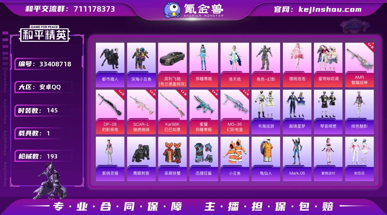 【kyhp1792】安卓 手Q-5粉装-7特效枪-1载具-2粉色飞行器-56586热力值-9王牌印记-145套装-193枪皮 【热门品类】:套装-都市猎人,套装-深海小丑鱼,套装-小丑鱼,套装-龟仙人,角色-Mark.06 【粉色套装】:角色-洛天依,角色-幻影,角色-樱桃泡泡,粉装-星穹咏叹调,角色-异瞳寒姬 【粉色枪皮等级】:SCAR-L-锦绣绵绵(五级),蜜獾-异瞳寒姬(四级),Kar98K-巳巳如意(五级),AMR-智耀战神(六级),AA12-G-萌骑幻想(五级),DP-28-豹影疾电(五级),MG-36-幻彩电音(四级) 【粉色载具】:宾利飞驰(布罗德盖棕双色) 【粉色枪皮】:SCAR-L-锦绣绵绵,蜜獾-异瞳寒姬,Kar98K-巳巳如意,AMR-智耀战神,AA12-G-萌骑幻想,DP-28-豹影疾电,MG-36-幻彩电音 【粉色飞行器】:炫彩糖果飞行器,暮色之舞飞行器 【粉色降落伞】:春暖花开降落伞,梦幻火箭降落伞,洛神天依降落伞,第五大道降落伞,祥瑞锦鲤降落伞,守护天翼降落伞,忍者神龟降落伞,樱桃泡泡降落伞,幻彩电音降落伞,荧海星豚降落伞,异瞳寒姬降落伞,炫彩糖果降落伞 【稀有套装】:套装-龟仙人,套装-雪国风尚,套装-炫彩糖果,套装-迅捷龙虾,角色-蜜桃派对,套装-粉恋花,套装-紫幽梦,套装-蓝冰羽,套装-星渊小夜曲,套装-...