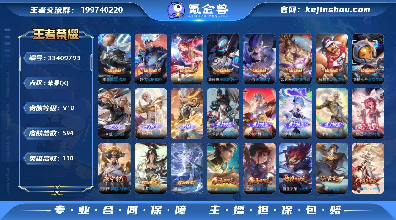 【LX50090】 苹果Q-V10-永恒钻石II段位-130英雄-594皮肤-8典藏皮肤-1典藏英雄-9无双-2珍品传说-104传说-184史诗-6星传说-1传说天幕-1小兵皮肤 【英雄全皮】:廉颇全皮,扁鹊全皮,刘邦全皮,孙权全皮,娜可露露全皮,刘备全皮,钟馗全皮,米莱狄全皮,李信全皮,盾山全皮,敖隐全皮,海月全皮,曜全皮,阿古朵全皮,司空震全皮,金蝉全皮,戈娅全皮,空空儿全皮,影全皮,海诺全皮 【荣耀典藏】:武则天英雄,武则天倪克斯神谕,夏侯惇无限飓风号,小乔天鹅之梦,鲁班七号星空梦想,程咬金活力突击,李白鸣剑曳影,韩信弑枪猎影,瑶拾光映像 【无双皮肤】:李信问心剑,孙悟空无相,曜器灵螭龙剑,公孙离离恨烟,不知火舞花合斗,小乔时之魔女,李白碎月剑心,妲己青丘九尾,武则天神器明辉仪 【珍品传说】:伽罗沧流箭,嫦娥器灵落星盏 【传说皮肤】:云缨神骥越千峰,狄仁杰神骥赴朔漠,司空震愿照山河定,女娲愿照千秋盛,妲己愿照众生和,澜愿照九州拓,蔡文姬愿照福禄聚,虞姬愿照岁时盈,云缨幻光神枪,桑启鸣野蒿,夏侯惇霜北刀,铠冥王哈迪斯,朵莉亚心动手记,云中君群星魔术团,墨子黄金天蝎座,海月金乌负日,亚连落雪白狼,吕布曦玄引,貂蝉曦玄引,典韦战鼓...