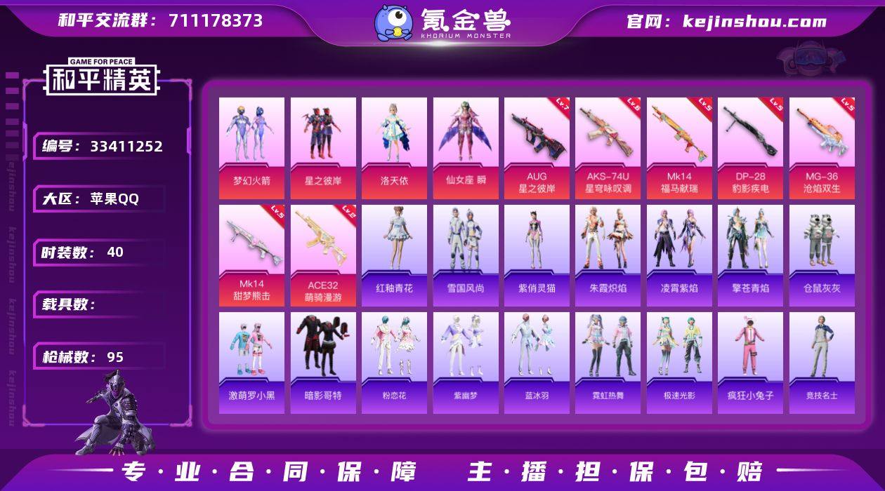 苹果 手Q-4粉装-7特效枪-0载具-1粉色飞行器-24867热力值-1王牌印记-40套装-95枪皮【热门品类】:粉装-梦幻火箭,套装-暗影哥特【粉色套装】:粉装-梦幻火箭,粉装-星之彼岸,角色-洛天依,角色-仙女座 瞬【粉色枪皮等级】:AUG-星之彼岸(七级),ACE32-萌骑漫游(二级),AKS-74U-星穹咏叹调(六级),Mk14-甜梦熊击(五级),Mk14-福马献瑞(五级),DP-28-豹影疾电(五级),MG-36-沧焰双生(五级)【粉色枪皮】:AUG-星之彼岸,ACE32-萌骑漫游,AKS-74U-星穹咏叹调,Mk14-甜梦熊击,Mk14-福马献瑞,DP-28-豹影疾电,MG-36-沧焰双生【粉色飞行器】:星之彼岸飞行器【粉色降落伞】:星之彼岸降落伞,环太平洋降落伞,星穹咏叹调降落伞,幻彩电音降落伞,喜羊羊与灰太狼降落伞【稀有套装】:套装-雪国风尚,套装-粉恋花,套装-紫幽梦,套装-蓝冰羽,套装-霓虹热舞,套装-极速光影,套装-朱霞炽焰,套装-凌霄紫焰,套装-擎苍青焰,角色-紫俏灵猫,套装-雨过天青,套装-红釉青花【稀有枪皮】:AKM-星之彼岸,SCAR-L-炫彩节奏,M416-蓝色火焰,M762-天降萌叽,M762-彩虹符号,G36C-星穹咏叹调,蜜獾-天降萌叽,ARX-凌霄紫焰,UZI-啾咪啾咪,UMP45-生命誓言,UMP45-圣穹绘梦,汤姆逊-天降萌叽,...
