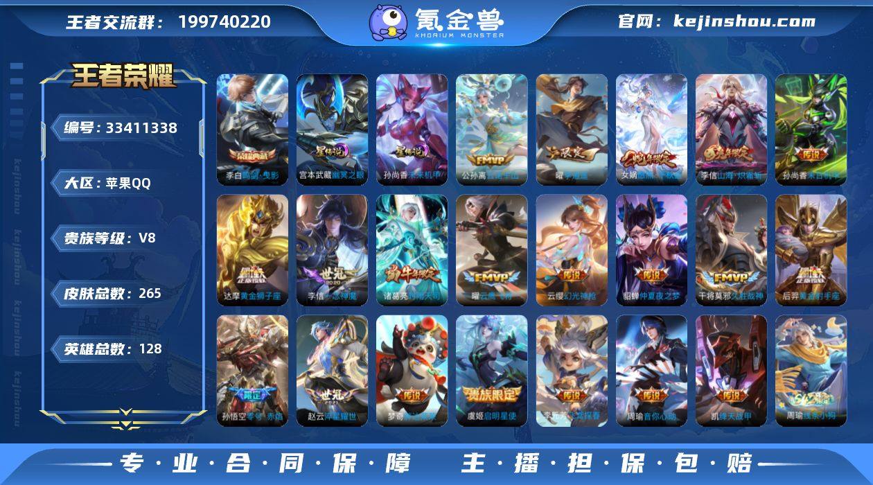 苹果Q-V8-永恒钻石I段位-128英雄-265皮肤-1典藏皮肤-21传说-68史诗【荣耀典藏】:李白鸣剑曳影【传说皮肤】:韩信踏浪归,公孙离云诺千山,女娲愿照千秋盛,云缨幻光神枪,李信山海炽霜斩,赵云淬星耀世,曜李逍遥 ,周瑜音你心动,李元芳飞鸢探春,诸葛亮时雨天司,铠绛天战甲,虞姬启明星使,孙悟空零号赤焰,曜云鹰飞将,李信一念神魔,干将莫邪久胜战神,达摩黄金狮子座,梦奇胖达荣荣,后羿黄金射手座,貂蝉仲夏夜之梦,孙尚香末日机甲【限定皮肤】:白起狰,姜子牙天穹之誓,狄仁杰阴阳师,赵云皇家上将,赵云龙胆,孙尚香蔷薇恋人,高渐离玩趣恶龙,钟无艳超时空战士,白起夜都怪侠,芈月白晶晶,吕布御风骁将,元歌云间偶戏,元歌无心,甄姬落雪兰心,典韦岱宗,马可波罗逐梦之星,马可波罗暗影游猎,马可波罗山海玄木吟,狄仁杰魔术师,狄仁杰万华元夜,达摩星际陆战队,达摩沙漠行僧,项羽海滩派对,老夫子醍醐杖,程咬金演武夺筹,韩信飞衡,王昭君午后时光,兰陵王金庭之子,花木兰默契交锋,亚瑟潮玩骑士王,孙悟空至尊宝,孙悟空零号赤焰,牛魔奔雷神使,李元芳云中旅人,虞姬启明星使,钟馗驱傩正仪,雅典娜单词大作战,太乙真人饕餮,鬼谷子原初探秘者,鬼谷...