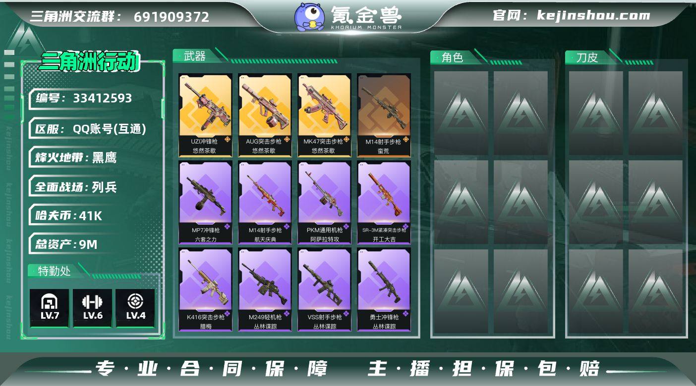 【SJZD3829】总资产9M/哈夫币4万/传说枪皮数4/战场等级10/行动等级52/安全箱等时效性道具以游戏内数据为准,详情请看图/近战-黑鹰/AUG突击步枪-悠然茶歇/MK47突击步枪-悠然茶歇/UZI冲锋枪-悠然茶歇/M14射手步枪-蛮荒/K416突击步枪-腊梅/SR-3M紧凑突击步枪-开工大吉/勇士冲锋枪-丛林谍踪/MP7冲锋枪-六套之力/PKM通用机枪-阿萨拉特攻/M249轻机枪-丛林谍踪/QJB201轻机枪-炽焰/VSS射手步枪-丛林谍踪/M14射手步枪-航天庆典/野牛冲锋枪-千里骏骨/SG552突击步枪-马年新春/SG552突击步枪-贴花艺术/ AK-12突击步枪-马年新春/G3战斗步枪-猛禽/CAR-15突击步枪-来财/KC17突击步枪-来财/MP5冲锋枪-哈夫克卫队/SMG-45冲锋枪-行动开启/SR-3M紧凑突击步枪-马年新春/Mini-14射手步枪-来财/QSZ92G-一帆风顺/G18-彩墨涂鸦/M4A1突击步枪-海色/QBZ95-1突击步枪-海色/K416突击步枪-几何迷彩/K416突击步枪-重击/M16A4突击步枪-高雅黑/M7战斗步枪-红色涂装/M7战斗步枪-重击/SG552突击步枪-海浪/SG552突击步枪-狂欢/PTR-32突击步枪-典雅/CAR-15突击步枪-狂欢/AS Val突击步枪-黑巧甜心/MP5冲锋枪-黄蜂/MP5冲锋枪-典雅/P90冲锋枪-黑巧甜心/UZI冲锋枪-重击/M1014霰弹枪-高雅黑/M1014霰弹枪-重击/QJB201轻机...