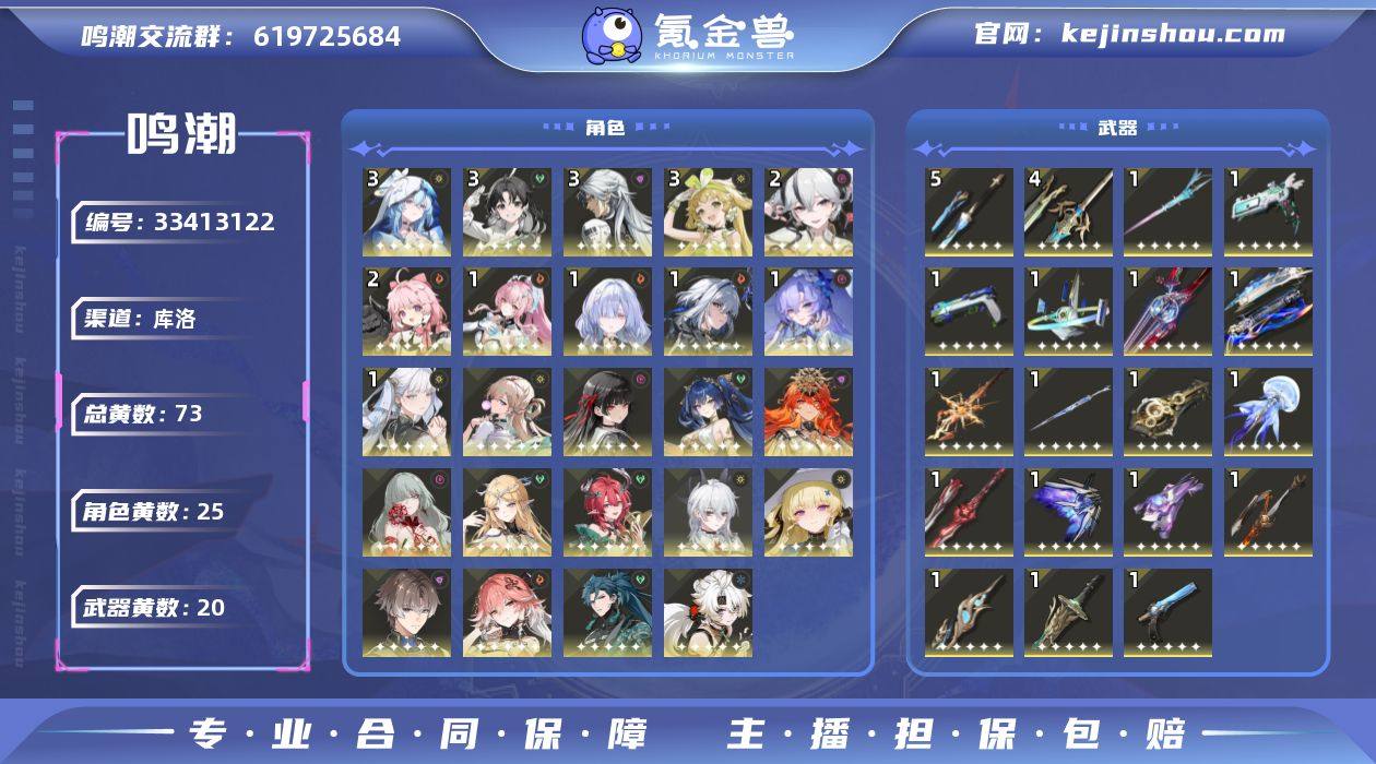 男/女主: 男主 总黄数: 73 联觉等级: 80 拥有五星共鸣者: 忌炎,鉴心,卡卡罗,安可,维里奈,凌阳,今汐,长离,相里要,守岸人,椿,菲比,坎特蕾拉,赞妮,夏空,卡提希娅,弗洛洛,奥古斯塔,尤诺,嘉贝莉娜,千咲,琳奈,莫宁,爱弥斯 3鸣五星共鸣者: 3鸣鉴心,3鸣卡卡罗,3鸣维里奈,3鸣守岸人 2鸣五星共鸣者: 2鸣安可,2鸣椿 1鸣五星共鸣者: 1鸣今汐,1鸣坎特蕾拉,1鸣嘉贝莉娜,1鸣莫宁,1鸣爱弥斯 0鸣五星共鸣者: 0鸣忌炎,0鸣凌阳,0鸣长离,0鸣相里要,0鸣菲比,0鸣赞妮,0鸣夏空,0鸣卡提希娅,0鸣弗洛洛,0鸣奥古斯塔,0鸣尤诺,0鸣千咲,0鸣琳奈 拥有五星武器: 苍鳞千嶂,千古洑流,停驻之烟,时和岁稔,赫奕流明,诸方玄枢,星序协响,裁春,海的呢喃,血誓盟约,焰光裁定,不屈命定之冠,驭冕铸雷之权,光影双生,昙切,相位涟漪,玻色星仪,宙算仪轨,永远的启明星 5鸣五星武器: 5鸣千古洑流 4鸣五星武器: 4鸣血誓盟约 1鸣五星武器: 1鸣苍鳞千嶂,1鸣停驻之烟,1鸣时和岁稔,1鸣赫奕流明,1鸣诸方玄枢,1鸣星序协响,1鸣裁春,1鸣海的呢喃,1鸣焰光裁定,1鸣不屈命定之冠,1鸣驭冕铸雷之权,1鸣光影双生,1鸣昙切,1鸣玻色星仪,1鸣相位涟漪,1鸣宙算仪轨,1鸣永远的启明星 亮点: 【MC304】80级/73黄/男主/25个五星角色/20个五星武器未绑定,...