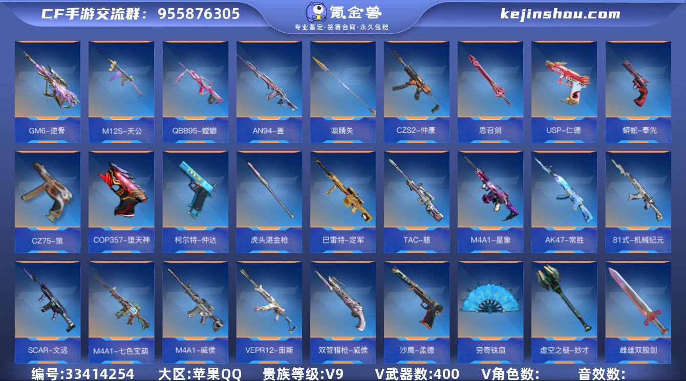 ✨竞技生化双开花!拉丝王力 拉丝王魄+王幻 雷霆王者大炮 冰皮王势+多三国套装+c4皮肤✨『400V-VIP9-等级156』 【王者武器】:/王者之力-HeartShot/王者幻神/巴雷特-雷霆王者/王者之魄-HeartShot/王者之势-冰霜奇迹/王者之影-冰霜奇迹/王者之心/王者之兽/王者之誉/王者之尊/王者之神-冰霜奇迹/王者之狱/王者之蝶/P90-雷霆王者/M12S-雷霆王者-冰霜奇迹/王者之霆/王者之迹/王者之魂/王者之啸/王者之击-HeartShot/王圣雷套/ 【热门武器】:/AK47-孟德-过载/M4A1-星象/M4A1-仲达-过载/AWM-妙才-过载/TAC-慈/GM6-逆骨/巴雷特-定军/AN94-盖/CZS2-仲康/M12S-天公/AK47-常胜/M4A1-威侯/SCAR-文远/M4A1-游骑兵-KZ/M4A1-七色宝葫/81式-机械纪元/QBB95-螳螂/VEPR12-宙斯/ 【副武器】:/COP357-堕天神/COP357-绚樱*3/沙鹰-孟德/双管猎枪-威侯/柯尔特-仲达/USP-仁德/CZ75-策/蟒蛇-奉先/ 【近战】:/穷奇铁扇/雌雄双股剑/啖睛矢/铁锹-孟德-过载/方天画戟/虎头湛金枪/思召剑/虚空之槌-妙才/ 【角色】:/云悠悠/钟小魁/雅典娜/步练师/ 【套装】(套装仅含主武器手枪近战):/孟德套/常胜套/威侯套/仲达套/宙斯套/仁德套/ 【其他】:/C4-葫芦娃救爷爷/6语音卡/16音效卡(王势 孟德 王幻 王力 仲...
