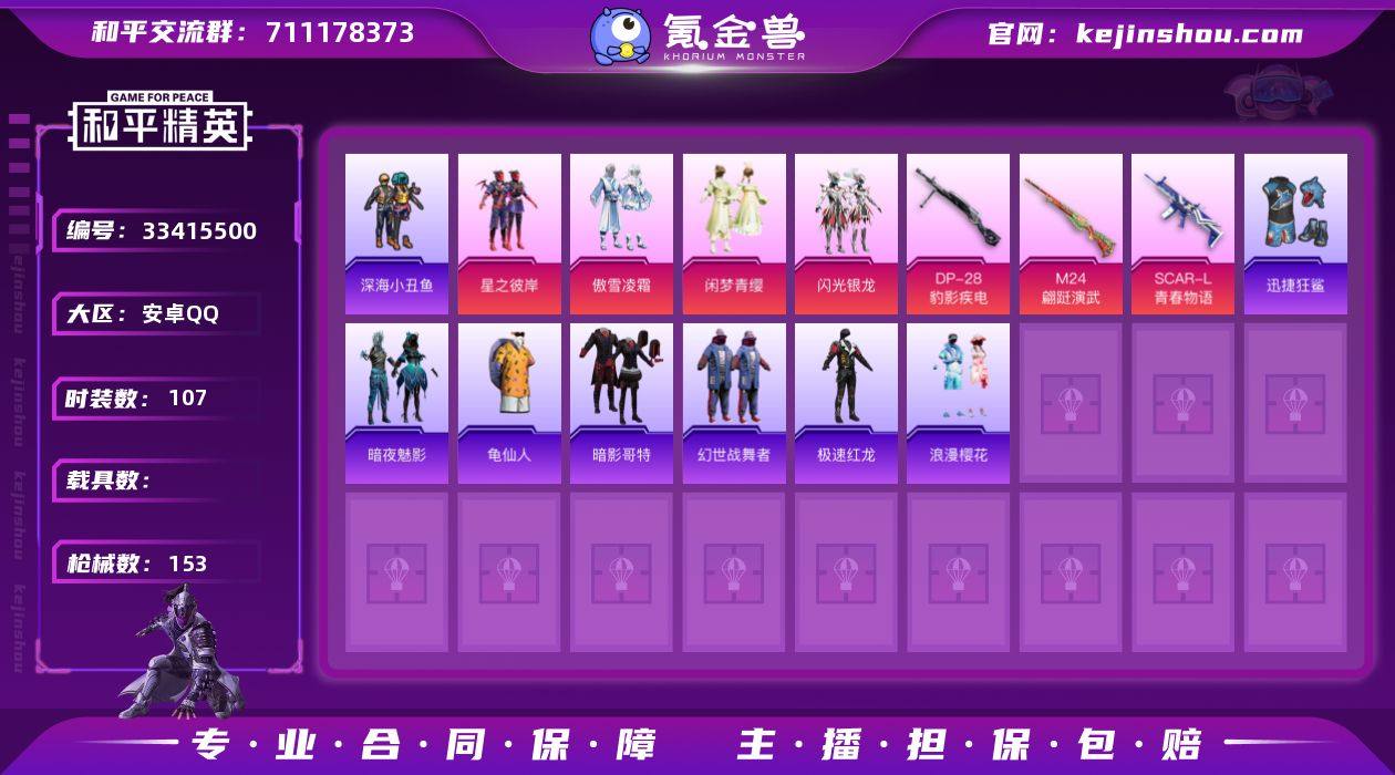 【957245】crhp50+【4粉装 5特效枪 SCAR-L-青春物语满级 哥特眼罩】 安卓手Q-4粉装-5特效枪-107套装-153枪皮-4王牌印记-坚韧铂金Ⅳ-45270热力值【4粉装】傲雪凌霜,闲梦青缨,星之彼岸,闪光银龙【5特效枪】M24-翩跹演武[7级],Mk14-福马献瑞[2级],DP-28-豹影疾电[2级],SCAR-L-青春物语[7级],UMP45-萌骑冒险[4级]【2稀有】暗影哥特,小丑鱼【3飞行器】太空嘟嘟飞行器,空岛之星尾迹,红色滑翔尾迹【1头盔】百万伏特头盔【1背包】深海小丑鱼背包【249其它衣服和枪皮】极速红龙,夏日音浪,雪国风尚,甜心亚梦,麻辣教官,鹤鸣,酷潮明星,SS19特训,甜蜜告白,无暇誓言,蓝色守护者,探宝勇士,空岛之星,轻风白浪,柠萌假日,竞技角斗士,角色-英勇保护者,SS20特训,霓虹街区,SS22特训,SS11特训,SS14特训,竞技名士,冰川特警,田园牧歌,龟仙人,虚音幻奏,福马献瑞,浪漫樱花,SS16特训,懵萌河马,SS26特训,琴音绮想,画境星梦,热血青春,SS36特训,萌趣咩咩,野性战心,玩偶服-懒羊羊,幻世战舞者,软羊咩咩,魅力单车,暗夜魅影,荣耀,香桃花海,神气柴柴,老实芭蕉,萌黄之夏,空投萌叽,SS37特训,SS15特训,绯格组合,龙的传人,骑行爱好者,光之冒险,海盐绵绵冰,妙红点点,SS18特训,王牌教练,迅捷狂鲨,街头潮人,SS10特训,SS12...