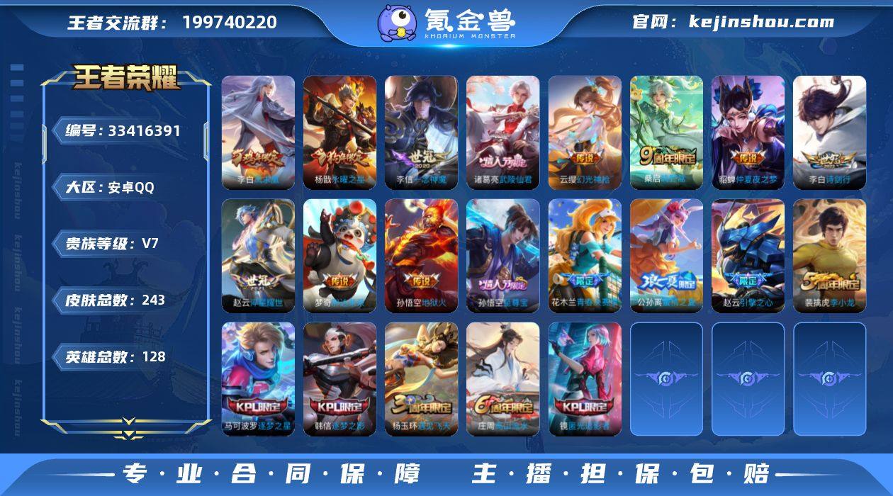 安卓Q 可二次 13传说128英雄243皮肤 凤求凰 幻光神枪 愿照九州拓 鸣野蒿 永曜之星 武陵仙君 淬星耀世 诗剑行 地狱火 一念神魔 胖达荣荣 仲夏夜之梦 末日机甲女 至尊宝 冰封战神 逐梦之影 逐梦之星 霸王别姬女 霸王别姬男 引擎之心 青春决赛季 蜜橘之夏 匿光追影者 冰冠公主 原初追逐者 黎明之约 黄忠百相守梦 器灵浮梦炉 飞车小橘子 原初探秘者 李小龙 水晶猎龙者 暗隐猎兽者 猫狗日记男 金属风暴 地狱岩魂 曙光守护者 特工战影 黄金分割率 逐浪之夏 晚萤 白龙吟 千年之狐 紫霞仙子 心灵骇客 圣诞恋歌 幽灵船长 乘风破浪 圣诞狂欢 节奏热浪 天才门将 暗夜贵公子 街头霸王 摇滚巨星 鬼剑武藏 德古拉伯爵 冰雪圆舞曲 炼金王 凯尔特女王 狰 饕餮 烛龙 重明 穷奇 御狮 御旌 御銮 朔风刀 混沌棋 疑决卦 醍醐杖 万华元夜 演武夺筹 黑猫爱糖果 驱傩正仪 未来纪元赵云 如懿 千军破阵 拳王 沙漠行僧 女仆咖啡 金庭之子 霸王丸 敏锐之力 丁香结 科学大爆炸 皇家上将 擒涛扼浪 魅力维加斯 探海日志 水果甜心 古海寻踪 天穹祈灯 高山流水 纤云弄巧 遇见飞天 鹰眼统帅 魔术师 王者荣耀账号