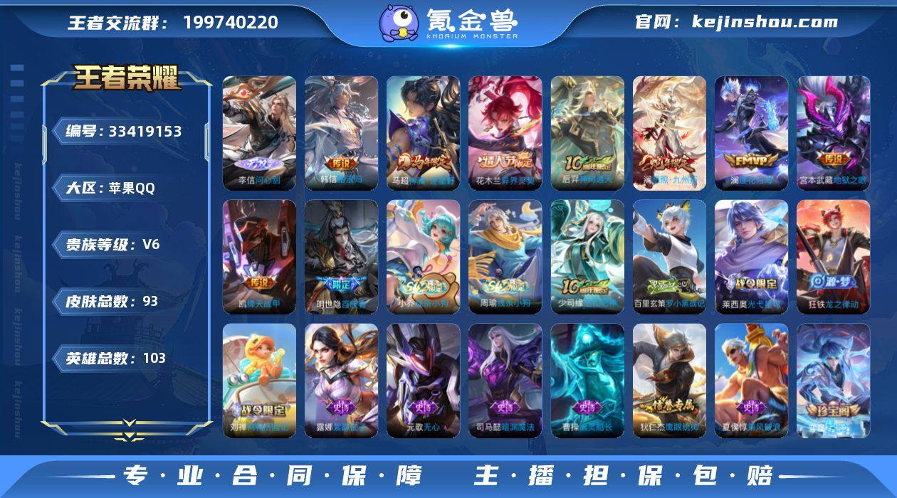 无二次-苹果Q-V6-至尊星耀I段位-103英雄-93皮肤-1无双-8传说-24史诗 【无双皮肤】:李信问心剑 【传说皮肤】:韩信踏浪归,马超神骥逐星野,花木兰异界灵契,后羿神树通天,澜愿照九州拓,澜逐花归海,铠绛天战甲,宫本武藏地狱之眼 【限定皮肤】:狄仁杰阴阳师,赵云皇家上将,元歌无心,狄仁杰魔术师,项羽海滩派对,沈梦溪龙舞盛年 【年限皮肤】:澜愿照九州拓 【赛季限定】:太乙真人谧流熔炉,钟馗虚灵犬护,亚瑟荣光之誓 【战令限定】:刘禅鸭鸭历险记,沈梦溪鸭鸭历险记,莱西奥光弋星穹,明世隐往忆晖光,周瑜线条小狗,小乔线条小狗 【史诗皮肤】:明世隐百晓客,周瑜线条小狗,小乔线条小狗,少司缘巫礼祀神,百里玄策罗小黑战记,莱西奥光弋星穹,狂铁龙之律动,刘禅鸭鸭历险记,弈星万物之道,马可波罗星界特工,元歌无心,司马懿暗渊魔法,狄仁杰鹰眼统帅,孙策猫狗日记,百里守约特工魅影,兰陵王暗隐猎兽者,夏侯惇乘风破浪,曹操幽灵船长,刘禅绅士熊喵,妲己魅力维加斯,孙尚香水果甜心,狄仁杰魔术师,王昭君偶像歌手,赵云皇家上将,露娜紫霞仙子 【其他皮肤】:虞姬溯影追猎,蚩奼极光幻客,曹操逐霄之志,艾琳鹤鸣心笺,明世隐往忆晖光,亚瑟荣光之誓,...