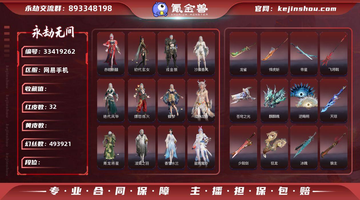 WJ6060,网易手机,5月15可换绑,三人段位铂金3,32红,813金,49万幻丝,声望13,御祥云,凶虎,西行劫神君印,炎烈珠,麒麟魄,少阳剑,冰魄,帝星,龙雀,狼主,悍虎斩,飞将戟,天琼,逆晦朔,狂龙,龙骧,苍穹之光,毕方,赤皓新囍,初代玄女,星辉魔纱,朱雀星衣,戎金狼,狱炎烬甲,熛怒炼火,蝶梦,泣珠龙纱,青龙将星,凌霄之羽,香雪水兰,绝代风华,沙漠香风,夜魅游莹,流金晓锦,画中仙,墨离,龙之影生死局,龙之影精武魂,冲冠,龙之影过江龙,夏日派对甜筒兔,夏日派对听浪,夏日派对初夏绯莓,夏日派对半夏晚风,夏日派对绮夏幻梦,亢龙,霜素,断暗,斩银河,锁魂斩怨,蝴蝶心,警长制服,康复之星,烈武者,赤焰舞影,炽火照夜,幽夜玲珑,倾国倾城羞花,逆天劫魂花,花海台,提步,傲立,男性发型14,找回包赔