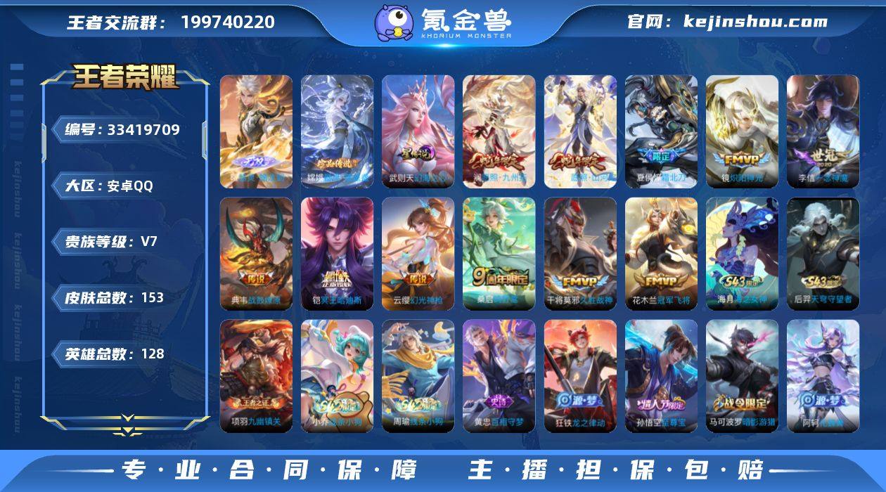 AHC71918,1星元,安卓Q-V7-至尊星耀I段位-128英雄-153皮肤-1无双-1珍品传说-11传说-38史诗 【英雄全皮】:孙权全皮,敖隐全皮,影全皮 【无双皮肤】:曜器灵螭龙剑 【珍品传说】:嫦娥器灵落星盏 【传说皮肤】:司空震愿照山河定,澜愿照九州拓,云缨幻光神枪,桑启鸣野蒿,夏侯惇霜北刀,铠冥王哈迪斯,典韦战鼓燎原,镜炽阳神光,李信一念神魔,干将莫邪久胜战神,花木兰冠军飞将 【限定皮肤】:夏侯惇霜北刀,铠冥王哈迪斯,姜子牙天穹之誓,狄仁杰阴阳师,赵云皇家上将,高渐离玩趣恶龙,夏侯惇朔风刀,马可波罗暗影游猎,狄仁杰魔术师,狄仁杰万华元夜,项羽海滩派对,老夫子醍醐杖,程咬金演武夺筹,孙悟空至尊宝,李元芳云中旅人,钟馗驱傩正仪,弈星混沌棋,明世隐疑决卦,裴擒虎李小龙,裴擒虎擒涛扼浪,上官婉儿天狼绘梦者,鲁班大师探海日志,桑启海盐诗旅,张良古海寻踪,鬼谷子天穹祈灯,姬小满妄想食味,刘邦剑破天穹,周瑜熔金海岸 【年限皮肤】:司空震愿照山河定,澜愿照九州拓 【赛季限定】:夏侯惇朔风刀,弈星混沌棋,明世隐疑决卦,老夫子醍醐杖,狄仁杰万华元夜,程咬金演武夺筹,钟馗驱傩正仪,李元芳云中旅人,桑启海盐诗旅,裴擒虎擒涛扼浪,鲁班大...