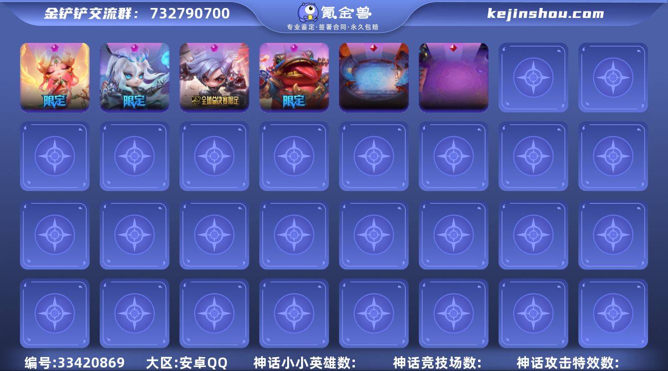 MCK633908 【精品鲤宝池4神话直接入五福娜美/福星塔姆/T1蔚】 英雄数量7 游戏等级35 【安卓QQ】 【不可修改】 【支持包赔】 【无防沉迷】 【铂金】 【V6】 【登神长阶】 神话英雄4 英雄竞技场1 传说竞技场2 神话英雄:福星小小塔姆纳财大帝,全球总决赛限定T1 小小蔚,月华之子 海月神小小佛耶戈,五福临门东海福星小小娜美; 英雄竞技场:金枝玉叶鲤宝池; 传说竞技场:演武场,小月球;