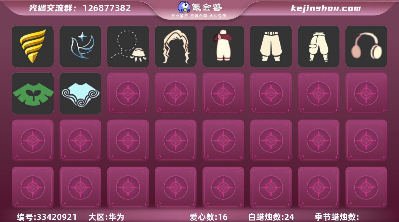 华为渠道负0两季猫猫头武士裤 常驻:晨岛,云野,雨林,霞谷,暮土,禁阁 季节:潜海季,青鸟季 礼包:水母肩饰,创始人斗篷 热门物品:潜水面具,单边小辫,维京斗篷,双翼遥鲲斗,九色鹿丝带裤,九色鹿丸子头,青鸟斗篷,青鸟面饰 热门复刻:绿芽,海洋斗,武士裤,虚荣,正太头,猫猫头,背带裤,搓澡巾,红耳机,箬笠,平顶帽,雨伞,高音钢琴,白金斗篷,黑金斗篷,红金斗篷,黄鼠狼面具 资源:24/16/0 身高-0.12~11.87 当前0.8