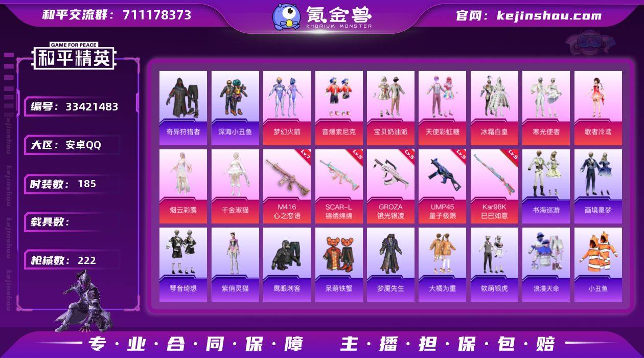 YZJ17047-可二次-安卓Q-1红装3稀有9粉装8特效枪20热门【极品神装素材号 双字ID:因丢3级女神艾丽娅 火箭少女 千金淑猫 烟云彩露 甜心两姐妹 花园小羊咩 灵蜜圈圈 大橘为重 金羽特工 小丑鱼 蜘蛛侠 双马尾 天命 满级M4心之恋语 神秘黑猫背包头盔 伙伴-小拳击手 3款飞行器 6张改名卡】185套装222枪皮 68564热力值 14印记 历史传奇王牌23星 【1红装】 暮色玫影-艾丽娅 (3级) 【3稀有】 奇异狩猎者 AKM-缤纷海域 浪漫天命 【9粉装】 梦幻火箭 宝贝奶油派 天使彩虹糖 千金淑猫 烟云彩露 歌者泠鸢 冰霜白皇 音爆索尼克 寒光使者 【8特效枪】 SCAR-L-锦绣绵绵 (5级) M416-心之恋语 (7级) AKS-74U-森灵之息 (5级) Kar98K-巳巳如意 (5级) UMP45-量子极限 (5级) GROZA-镜光银凌 (5级) Mk14-福马献瑞 (1级) ACE32-萌骑漫游 (2级) 【20热门】 小丑鱼 龟仙人 梦魇先生 呆萌铁蟹 鹰眼刺客 软萌银虎 深海小丑鱼 大橘为重 金羽特工 团圆交子 瑞龙福将 粉红小猪 漫步者 极速红龙 弄潮海豚 AKM-奇异狩猎者 M762-奇异狩猎者 M762-瑞龙福将 M24-奇异狩猎者 S686-奇异狩猎者 【2飞行器】 梦幻火箭飞行器 萌物绒绒飞行器 【1头盔】 梦幻火箭头盔 【3背包】 梦幻火箭背包 甜心宝贝背包 神秘黑猫背包...