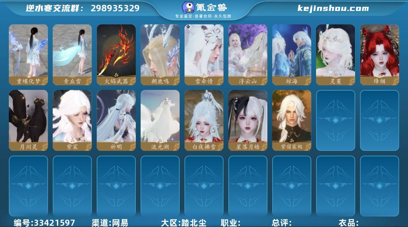 【已用天赏石25】天霓染4, 天赏发型8, 副本外观5, 馆藏7级, 灵韵7, 8国色, 268980衣品, 70930国色值, 244套时装, 详情见图【充值称号】 把酒临风 【已用天赏石】 24 【天霓染数量】 4 【天霓染】 无常白袍*1, 烟黛粉墨*1, 淑蝶*1, 折红扇*1 【时鉴赏】 时鉴赏一期10级 【天赏发型】 雪牵情, 朝鹿鸣, 紫宸, 祈明, 绛烟, 灵蔓, 琼海, 浮云山 【天赏祥瑞】 流光溯, 月川灵 【天赏外观】 火焰武器, 重蝶化梦,青丘雪 【副本外观】 白夜拂雪*2, 霜途无间, 紫宿宸极, 星落月皓