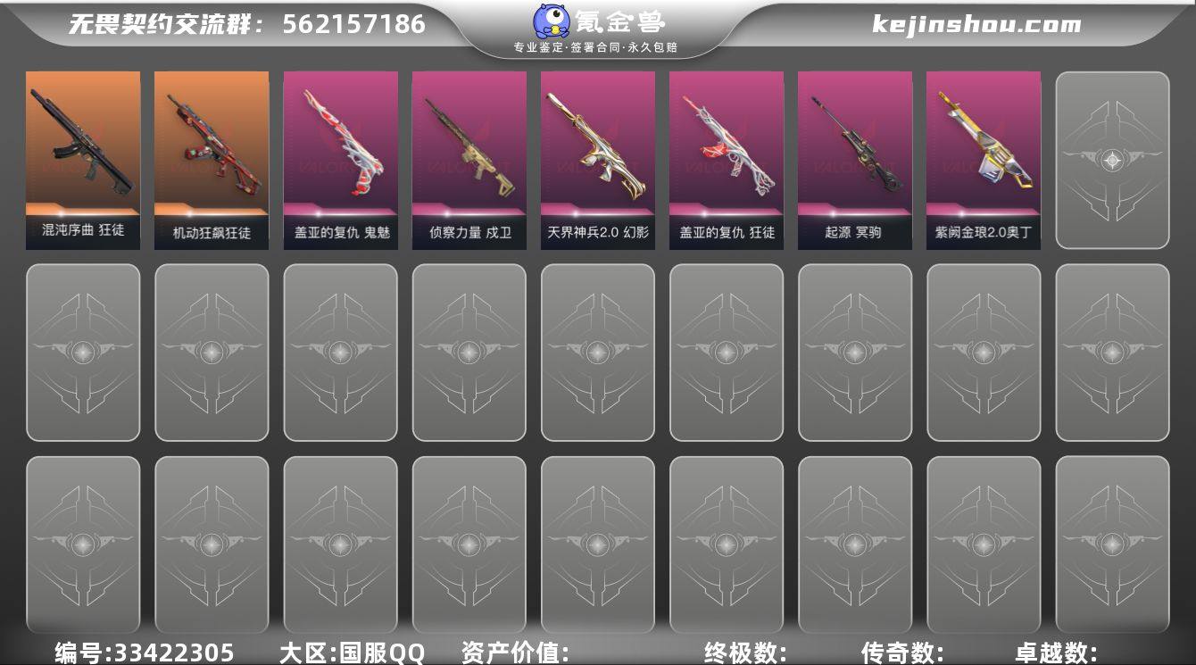 【sf371】【英雄】:幻棱,炼狱,维斯,暮蝶,钛狐,壹决,铁臂,捷风,雷兹,幽影,不死鸟,贤者,猎枭,蝰蛇,零,芮娜,奇乐,尚勃勒,霓虹,斯凯,夜露,星礈,K/O,海神,盖可,黑梦,钢锁 【近战武器】:近战武器-剥皮小刀,近战武器-艾沃莉的魔法棒,近战武器-沙尘幻旅 匕首 【狂徒】:狂徒-2025全球冠军赛,狂徒-混沌序曲,狂徒-机动狂飙,狂徒-盖亚的复仇,狂徒-沙尘幻旅 【幻影】:幻影-天界神兵//2.0 【戍卫】:戍卫-侦察力量,戍卫-萌彩剪影 【獠犬】:獠犬-胡桃狂想 【冥驹】:冥驹-起源,冥驹-胡桃狂想 【飞将】:飞将-沙尘幻旅 【战神】:战神-萌彩剪影 【奥丁】:奥丁-紫阙金琅//2.0 【判官】:判官-萌彩剪影 【骇灵】:骇灵-沙尘幻旅,骇灵-无限竞技 【蜂刺】:蜂刺-胡桃狂想 【标配】:标配-超能偶像 【VCT手枪】:标配-VCT25 x 100T 【正义】:正义-西部未来,正义-超限闪存,正义-沙尘幻旅,正义-复古浪潮,正义-纳米打击 【鬼魅】:鬼魅-盖亚的复仇,鬼魅-流星兵团,鬼魅-诡秘蛇影,鬼魅-光导纤维,鬼魅-胡桃狂想,鬼魅-星云暗涌 【狂怒】:狂怒-蒙太奇,狂怒-萌彩剪影 【短炮】:短炮-蛇吻 【卡面】:终章:激斗汉堡 卡面,进入射程 卡面,《双城之战》...