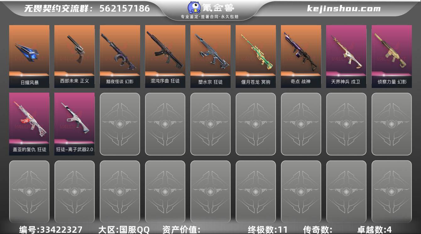 【952700】【英雄】:幻棱,炼狱,暮蝶,钛狐,壹决,铁臂,捷风,幽影,不死鸟,贤者,猎枭,零,芮娜,尚勃勒,霓虹,斯凯,夜露,K/O,盖可,黑梦,钢锁 【近战武器】:近战武器-埃芒迪尔大剑,近战武器-盖亚之愠,近战武器-影刃,近战武器-日耀风暴 遗器 【狂徒】:狂徒-混沌序曲,狂徒-塑水宗,狂徒-盖亚的复仇,狂徒-离子武器//2.0 【幻影】:幻影-黯夜怪谈,幻影-侦察力量 【戍卫】:戍卫-天界神兵 【冥驹】:冥驹-偃月苍龙 【战神】:战神-奇点 【正义】:正义-西部未来 【鬼魅】:鬼魅-诡秘蛇影 【卡面】:树懒大作战 卡面,Clutch 卡面,无畏契约GO!第一卷:芮娜 卡面,清除名单 卡面,无畏契约GO!第一卷:零 卡面,《双城之战》金克丝 卡面,代号红色 卡面,新兵报到 卡面,V契约 卡面,无畏契约 卡面 【喷漆】:审判之爪 喷漆,加油!加油! 喷漆,致命优雅 喷漆,买装还是存钱 喷漆,胜利属于无畏契约 喷漆,GLHF 喷漆,无畏契约 喷漆 【挂饰】:鱼骨头 挂饰,天外飞客 挂饰,无畏契约 纪念币 挂饰