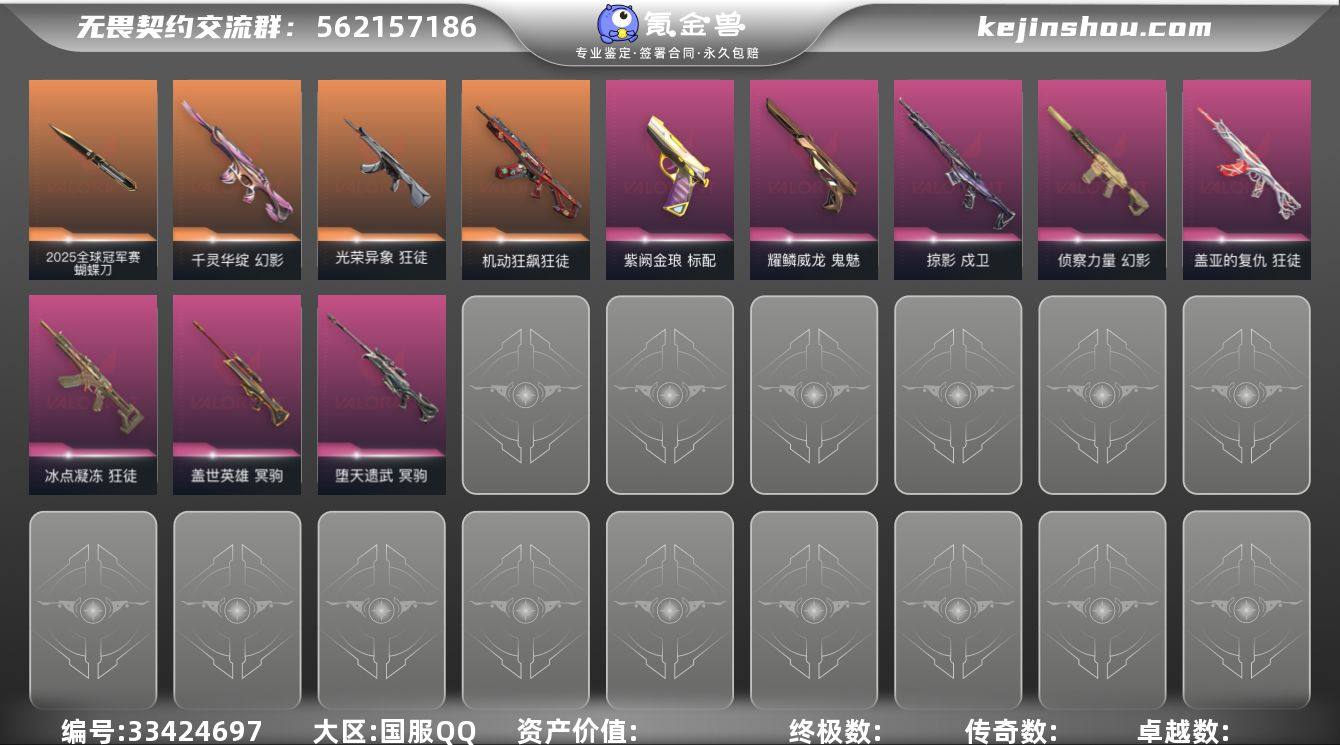 【sf400】【套装】:2025全球冠军赛套装,VCT 2025 赛季套装 【英雄】:幻棱,炼狱,维斯,暮蝶,钛狐,壹决,铁臂,捷风,雷兹,幽影,不死鸟,贤者,猎枭,蝰蛇,零,芮娜,奇乐,尚勃勒,霓虹,斯凯,夜露,星礈,K/O,海神,盖可,黑梦,钢锁 【近战武器】:近战武器-2025全球冠军赛 蝴蝶刀,近战武器-剥皮小刀,近战武器-VCT 2025 爪刀,近战武器-紫金爪刀,近战武器-落英飞旋,近战武器-澄湖潋滟,近战武器-诡秘蛇影 军刀,近战武器-神圣领域 战刀,近战武器-日耀风暴 遗器,近战武器-阿特拉斯指挥部 甩棍 【狂徒】:狂徒-2025全球冠军赛,狂徒-机动狂飙,狂徒-塑水宗,狂徒-RGX 11z Pro,狂徒-光荣异象,狂徒-般若假面//2.0,狂徒-冰点凝冻,狂徒-盖亚的复仇,狂徒-诡秘蛇影 【幻影】:幻影-千灵华绽,幻影-侦察力量,幻影-异鳞魔蛇,幻影-神圣领域,幻影-末日之翼 【戍卫】:戍卫-掠影,戍卫-月球哨兵,戍卫-折光棱晶 【獠犬】:獠犬-神圣领域 【冥驹】:冥驹-堕天遗武,冥驹-盖世英雄,冥驹-星云暗涌 【飞将】:飞将-末日之翼 【莽侠】:莽侠-诡秘蛇影,莽侠-月球哨兵 【战神】:战神-神圣领域 【奥丁】:奥丁-末日之翼 【判官】:判官-诡秘蛇影 【雄鹿】:雄鹿-月球...