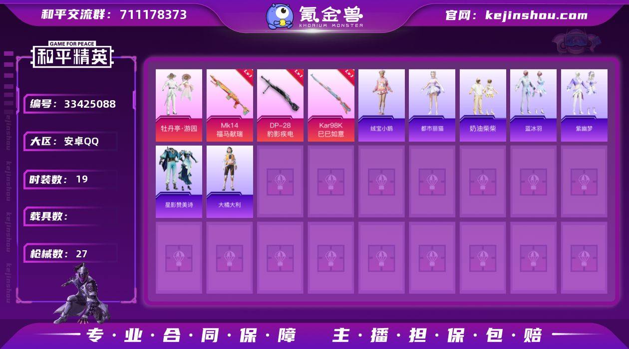 M1046858有二次【连体号 68英雄 有敖隐 69皮肤 6传说 20史诗 V4】 安卓手Q-1粉装-3特效枪-19套装-27枪皮-0王牌印记-坚韧铂金Ⅰ-7620热力值【1粉装】牡丹亭·游园【3特效枪】Mk14-福马献瑞[3级],DP-28-豹影疾电[2级],Kar98K-巳巳如意[3级]【1飞行器】牡丹亭・游园飞行器【42其它衣服和枪皮】薄荷星砂,战术大师,蓝冰羽,完美偶像,狙击之神,紫幽梦,长空猛禽,绒宝小鹅,马上有钱,福马献瑞,海盐绵绵冰,角色-都市丽猫,SS37特训,角色-瑰梦爱神,奶油柴柴,青涩时光,大橘大利,星影赞美诗,PKM-紫幽梦,GROZA-福马献瑞,S1897-紫幽梦,平底锅-紫幽梦,UZI-炫彩糖果,信号枪-异瞳寒姬,蝎式手枪-虹云熊熊,P92-紫幽梦,MG3-霓彩脉冲,Mk14-紫幽梦,AUG-紫晶流影,平底锅-空岛之星,平底锅-许七安,SCAR-L-炫彩节奏,MG3-智耀战神,UZI-天降萌叽,MG3-幻世战舞者,铝热弹-炫彩糖果,SKS-炫彩节奏,汤姆逊-像素花束,Vector-荒原烈焰,UMP45-绒宝小鹅,SLR-乌木金纹,蜜獾-乌木金纹