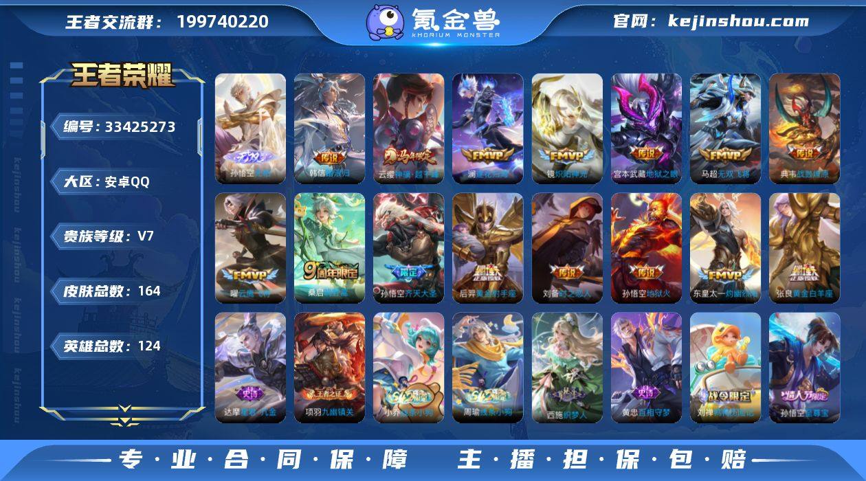 安卓Q-V7-至尊星耀V段位-124英雄-164皮肤-1无双-15传说-39史诗 【英雄全皮】:孙权全皮 【无双皮肤】:孙悟空无相 【传说皮肤】:韩信踏浪归,云缨神骥越千峰,桑启鸣野蒿,典韦战鼓燎原,澜逐花归海,东皇太一灼幽烈阳,孙悟空齐天大圣,马超无双飞将,镜炽阳神光,曜云鹰飞将,刘备时之恋人,张良黄金白羊座,后羿黄金射手座,宫本武藏地狱之眼,孙悟空地狱火 【限定皮肤】:姜子牙天穹之誓,狄仁杰阴阳师,赵云皇家上将,墨子降魔,孙尚香蔷薇恋人,狄仁杰魔术师,项羽海滩派对,孙悟空至尊宝,孙悟空大圣娶亲,孙悟空齐天大圣,李元芳云中旅人,雅典娜黎明之约,裴擒虎李小龙,妲己灵卜魔法,刘邦剑破天穹,周瑜熔金海岸 【赛季限定】:李元芳云中旅人,刘邦剑破天穹,姜子牙天穹之誓,东皇太一噬灭天穹,太乙真人谧流熔炉,钟馗虚灵犬护,甄姬逆浪荇歌,亚瑟荣光之誓,雅典娜黎明之约,项羽九幽镇关 【战令限定】:妲己灵卜魔法,亚连破空之剑,孙悟空神迹守卫,百里守约百相守梦,老夫子百相守梦,孙膑茶境仙,马超访茗客,刘禅鸭鸭历险记,沈梦溪鸭鸭历险记,周瑜线条小狗,小乔线条小狗 【史诗皮肤】:达摩星君亢金,周瑜线条小狗,小乔线条小狗,项羽九幽镇关,西施...