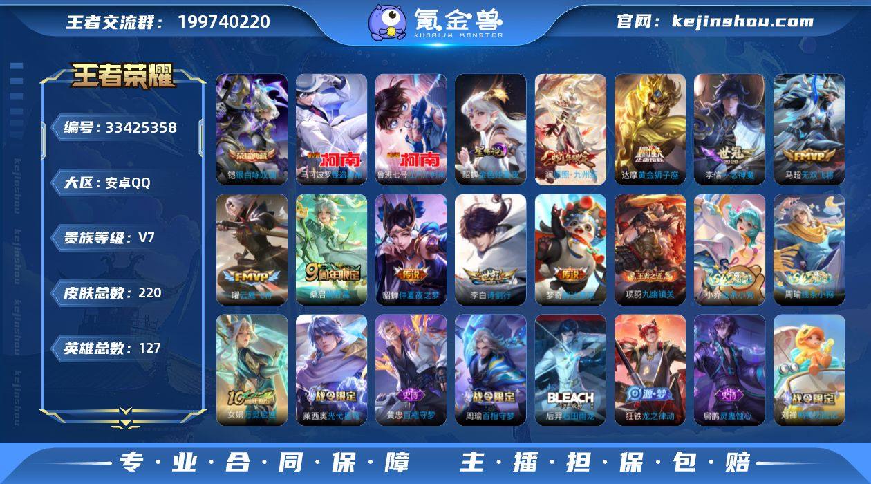 【952288】MWZ105967【V7 英雄127 皮肤220 典藏1 珍品传说2 传说9 星传说1 金色仲夏夜】安卓Q-220皮肤-127英雄 【珍品传说】 怪盗基德 江户川柯南 【典藏皮肤】 银白咏叹调 【传说皮肤】 鸣野蒿 愿照·九州拓 诗剑行 无双飞将 黄金狮子座 仲夏夜之梦 一念神魔 胖达荣荣 云鹰飞将 【史诗皮肤】 蔬乡物语 蔬乡物语 茶境仙 百相守梦 器灵·浮梦炉 布丁狗之约 谧流熔炉 灵蛊蚀心 鸭鸭历险记 龙之律动 线条小狗 九幽镇关 星界特工 青焰无极 浮光幕影 百相守梦 踏浪烽翎 苍威无极 聚星闪耀 江河有灵 幻夜行动 决胜大满贯 超元猎域 百解令 百相守梦 光弋星穹 万灵启世 石田雨龙 驭风魔法 舞动绿茵 幽灵船长 拒霜思 功夫厨神 女仆咖啡 魔术师 鹰眼统帅 箭羽风息 鬼剑武藏 水晶猎龙者 修罗 曙光守护者 暗隐猎兽者 千年之狐 逐浪之夏 地狱岩魂 德古拉伯爵 绅士熊喵 紫霞仙子 圣诞狂欢 金属风暴 梁祝 暗渊魔法 猫狗日记 水果甜心 时之恋人 乘风破浪 冰冠公主 心灵战警 天秀·启明 摇滚巨星 云间偶戏 乱世虎臣 皇家上将 冰雪圆舞曲 乐园奇幻夜 黄金分割率 五谷丰年 未来纪元 节奏热浪 心灵骇客 星夜王子 特工魅影 原初追逐者 【勇者皮肤】 金庭之子 云中旅人 玲珑珍味 访茗客 探海日志 海盐诗...