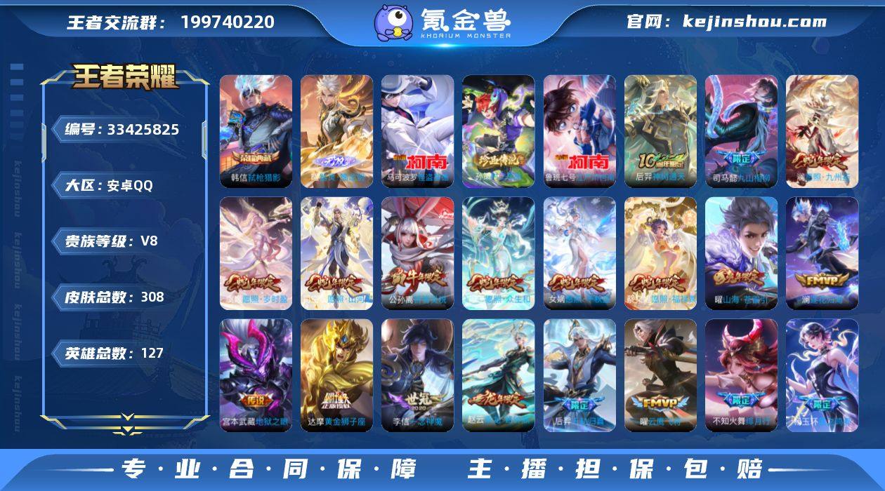 【950251】不可二次 安卓Q-V8-永恒钻石I段位-127英雄-308皮肤-1典藏皮肤-1无双-3珍品传说-32传说-92史诗 QW2613125 【英雄全皮】:司马懿全皮,孙权全皮,钟馗全皮,苍全皮,空空儿全皮,影全皮 【荣耀典藏】:韩信弑枪猎影 【无双皮肤】:曜器灵螭龙剑 【珍品传说】:马可波罗怪盗基德,鲁班七号江户川柯南,孙策时之奇旅 【传说皮肤】:后羿神树通天,司马懿九山相柳,杨玉环星之鸣奏,后羿千劫归真,司空震愿照山河定,女娲愿照千秋盛,妲己愿照众生和,澜愿照九州拓,蔡文姬愿照福禄聚,虞姬愿照岁时盈,云缨幻光神枪,桑启鸣野蒿,赵云乘龙铭钟鼎,铠琥珀纪元,澜逐花归海,马可波罗妄想实况,花木兰燃星之曲,曜山海苍雷引,吕布怒海麟威,李白诗剑行,不知火舞绯月行,赵云淬星耀世,周瑜音你心动,公孙离祈雪灵祝,铠绛天战甲,虞姬启明星使,曜云鹰飞将,李信一念神魔,刘备时之恋人,达摩黄金狮子座,宫本武藏地狱之眼,狄仁杰超时空战士 【限定皮肤】:蒙犽顽岩魄,蔡文姬夏日便利店,虞姬夏日便利店,姜子牙天穹之誓,狄仁杰阴阳师,赵云皇家上将,赵云引擎之心,墨子降魔,孙尚香蔷薇恋人,高渐离玩趣恶龙,扁鹊奇幻香踪,芈月白晶晶,元歌无心,典韦蓝屏警告,...