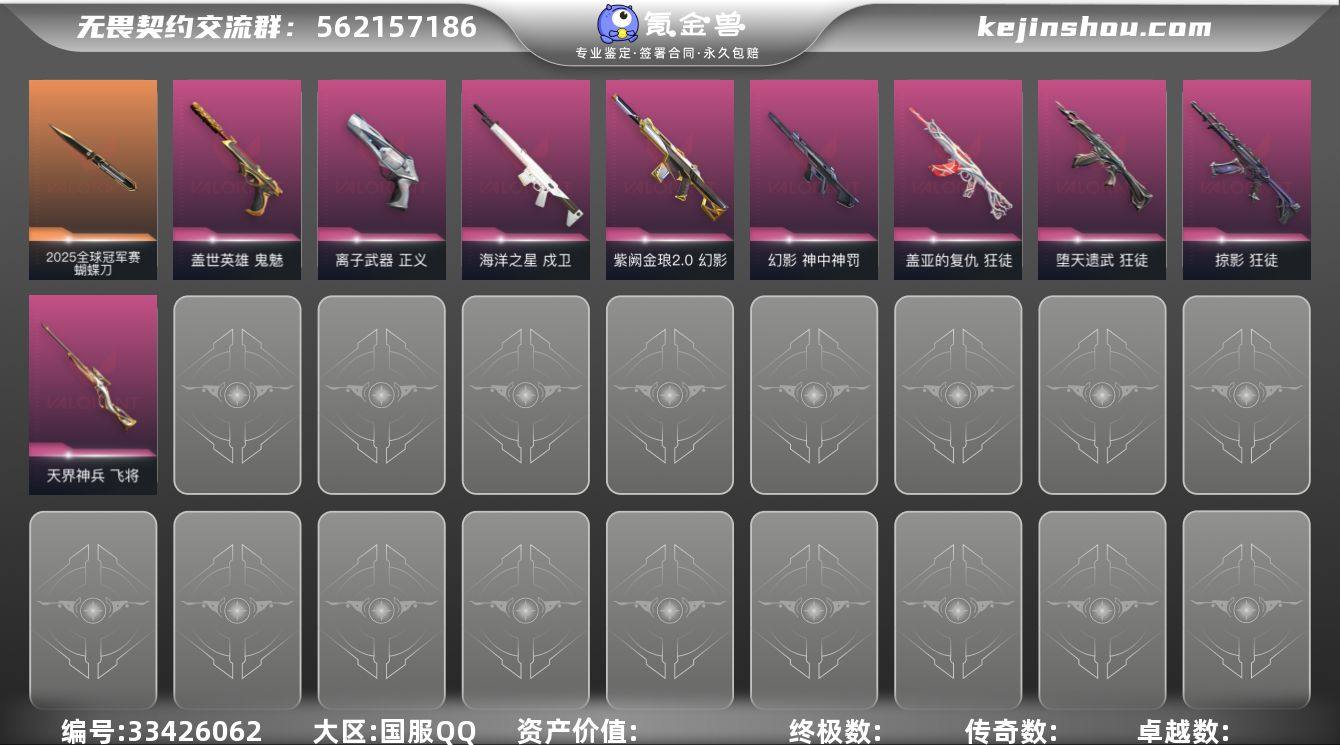 【sf428】【套装】:2025全球冠军赛套装,VCTxEDG 队伍套装 【英雄】:幻棱,炼狱,维斯,暮蝶,钛狐,壹决,铁臂,捷风,雷兹,幽影,不死鸟,贤者,猎枭,蝰蛇,零,芮娜,奇乐,尚勃勒,霓虹,斯凯,夜露,星礈,K/O,海神,盖可,黑梦,钢锁 【近战武器】:近战武器-2025全球冠军赛 蝴蝶刀,近战武器-超时空卫队 三棱军刺,近战武器-RGX 11z Pro//3.0 爪刀,近战武器-超能偶像 应援棒,近战武器-超限闪存 匕首,近战武器-盖亚之愠,近战武器-荒土机兵 热能刀 【狂徒】:狂徒-2025全球冠军赛,狂徒-归零者,狂徒-堕天遗武,狂徒-掠影,狂徒-盖亚的复仇,狂徒-超能偶像,狂徒-荒土机兵 【幻影】:幻影-紫阙金琅//2.0,幻影-神中神罚,幻影-超限闪存,幻影-聚合之力,幻影-纳米打击 【戍卫】:戍卫-海洋之星,戍卫-超能偶像,戍卫-浮光跃金,戍卫-逆冲蛮牛 【獠犬】:獠犬-采蜜小蜂队,獠犬-模拟赫兹,獠犬-逆冲蛮牛 【冥驹】:冥驹-荒土机兵,冥驹-模拟赫兹 【飞将】:飞将-天界神兵,飞将-聚合之力 【莽侠】:莽侠-超限闪存 【战神】:战神-采蜜小蜂队,战神-浮光跃金 【奥丁】:奥丁-纳米打击 【判官】:判官-超能偶像,判官-采蜜小蜂队,判官-纳米打击x 【雄鹿】:雄鹿-...