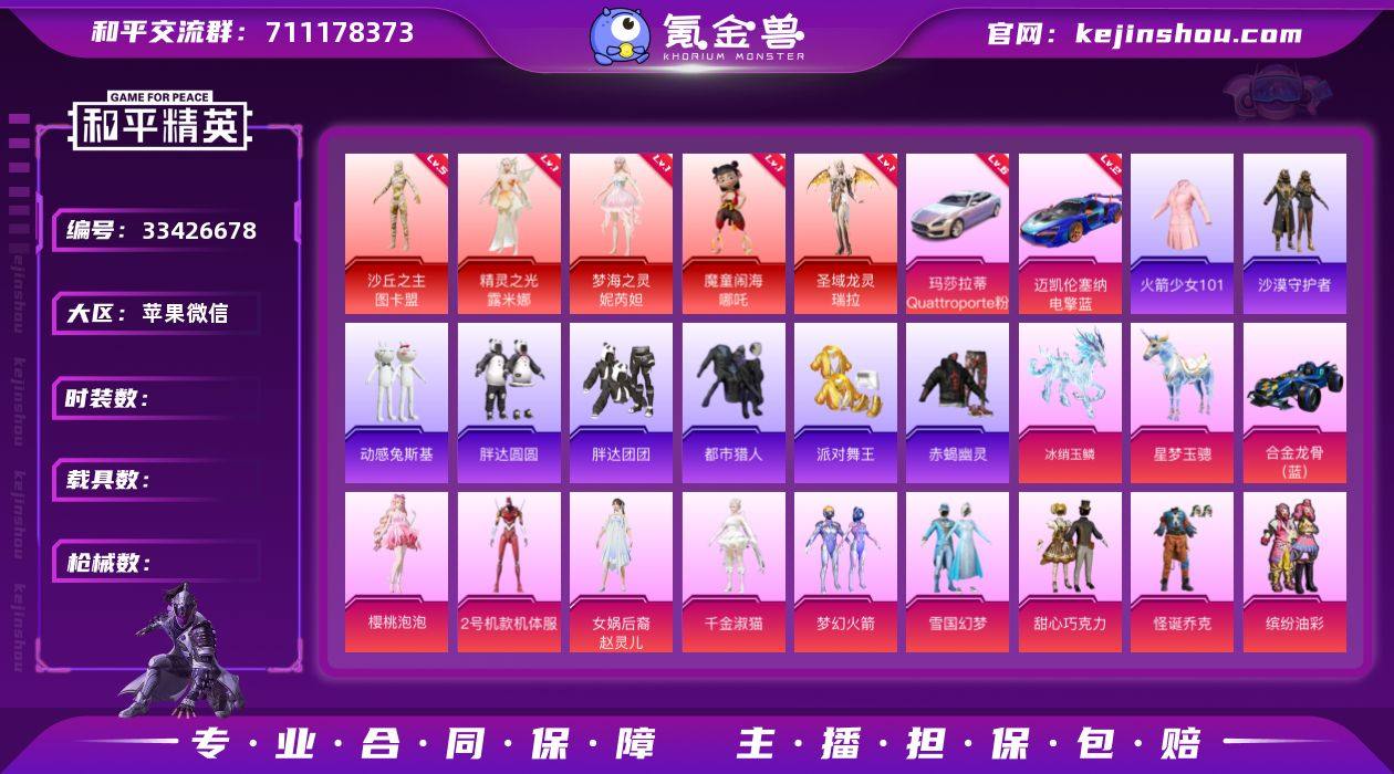 编号91688 果V可改,地铁满天赋,36印记,地铁满天赋,战神框,5级图卡盟,瑞拉,哪咤,露米娜,妮芮妲,新老101,螳螂,觉醒,小丑,金鞋子,黑丝,狂沙,雪国,赵灵儿,洛天依,巧克力, 猪妹,放客,番茄,第五大道,灵感,第五大道,稻草人,满级玛莎,2级塞纳,星梦玉骢,满级至情至圣,满级盖世,7级星梦奇缘,仙履奇缘,玉面桃花,玉魂,梦海之灵,盛世惊鸿,金蛇镇世,精灵之光,沙丘之主,圣域龙灵, 墨龙九天,46特6满13计数17淘汰,42粉5红,10载具1僚机,近23W热力(历史挂车7天!)