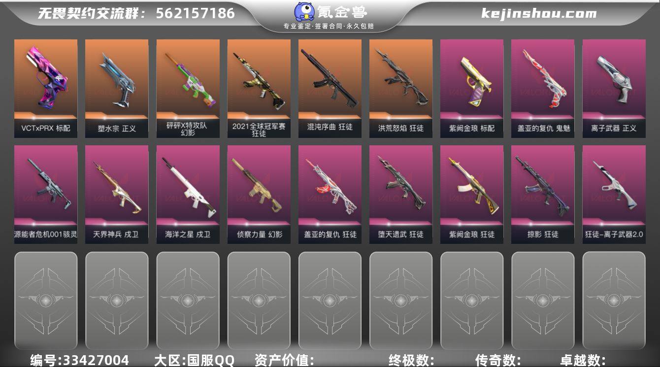 【sf464】【套装】:VCT 2025 赛季套装,西部未来套装,奇点//2.0套装,VCTxEDG 队伍套装 【英雄】:幻棱,炼狱,维斯,暮蝶,钛狐,壹决,铁臂,捷风,雷兹,幽影,不死鸟,贤者,猎枭,蝰蛇,零,芮娜,奇乐,尚勃勒,霓虹,斯凯,夜露,星礈,K/O,盖可,黑梦,钢锁 【近战武器】:近战武器-剥皮小刀,近战武器-奇点//2.0 蝴蝶刀,近战武器-VCT 2025 爪刀,近战武器-紫金爪刀,近战武器-鬼丸国纲,近战武器-未来开拓者,近战武器-珍珠棘贝 短剑,近战武器-流星兵团 短剑,近战武器-超能偶像 应援棒,近战武器-超限闪存 匕首,近战武器-荒土机兵 热能刀,近战武器-视界洞穿,近战武器-诡秘蛇影 军刀,近战武器-神圣领域 战刀 【狂徒】:狂徒-2021全球冠军赛,狂徒-洪荒怒焰,狂徒-混沌序曲,狂徒-奇点//2.0,狂徒-塑水宗,狂徒-RGX 11z Pro,狂徒-堕天遗武,狂徒-掠影,狂徒-盖亚的复仇,狂徒-紫阙金琅,狂徒-离子武器//2.0,狂徒-超能偶像,狂徒-荒土机兵,狂徒-流星兵团,狂徒-诡秘蛇影 【幻影】:幻影-砰砰X特攻队,幻影-西部未来,幻影-侦察力量,幻影-超限闪存,幻影-珍珠棘贝,幻影-神圣领域,幻影-聚合之力,幻影-纳米打击,幻影-末日之翼,幻影-西部未来 【戍卫】:...