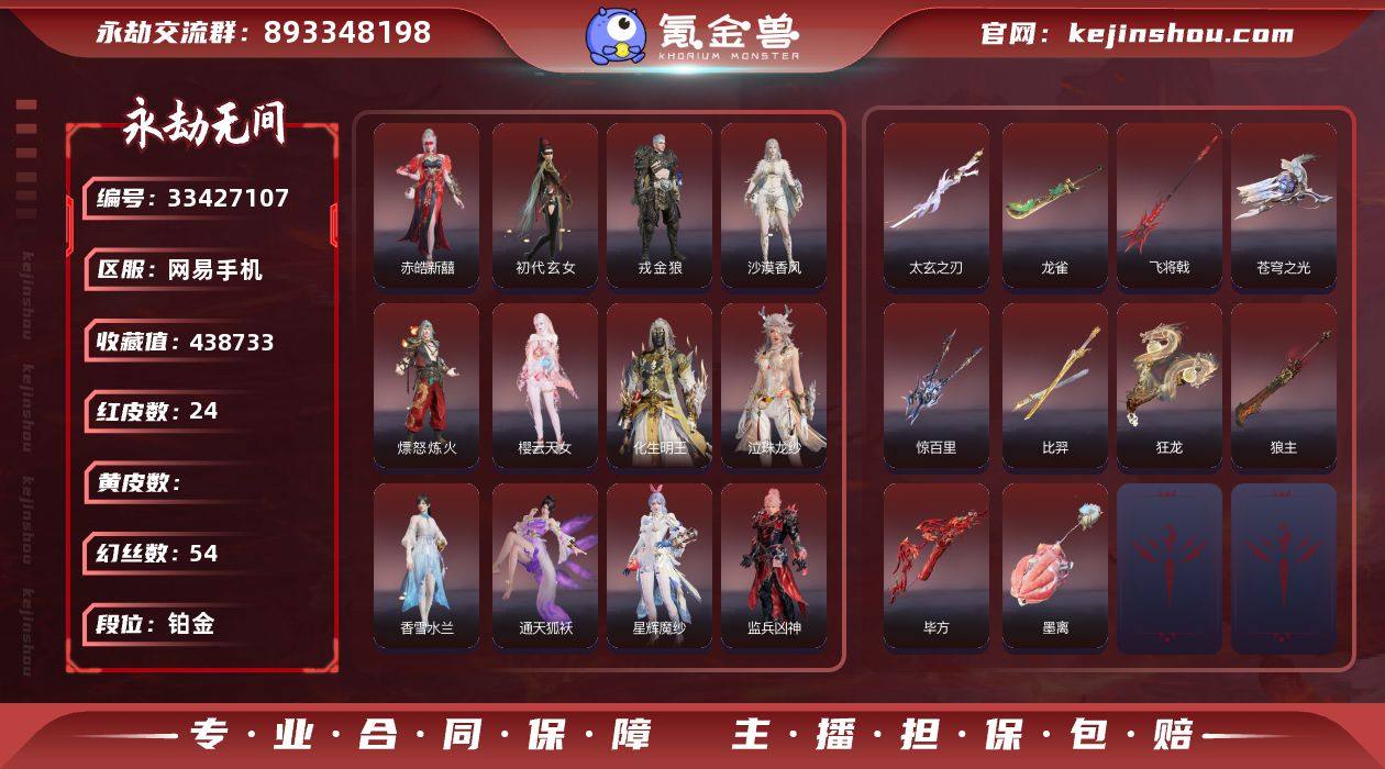 WJ6062,网易手机,5月15可换绑,三人段位铂金1,声望10,24红,719金,等级503,收藏值438733,幻丝54,金砖352,通行证Lv11,变身器,荆魂,封神录赤莲,葫芦兄弟宝葫芦,绿野守护竹韵悠,2674初代机,观山海春木,璃光洛天依音愈律阶,洛天依音愈律阶,璃光洛天依共鸣,洛天依共鸣,红色神品,墨离,香雪水兰,沙漠香风,监兵凶神,通天狐袄,星辉魔纱,流金晓锦,征天白龙,化生明王,赤皓新囍,初代玄女,戎金狼,熛怒炼火,樱云天女,泣珠龙纱,苍穹之光,毕方,比羿,龙雀,狼主,飞将戟,狂龙,惊百里,太玄之刃,角色金色皮肤,封神录申公豹,司天命,朝闻道,玉衡天君,墨染千秋剪春漪,禄运玉霄,封神录龙吉公主,夏日派对仲夏霜华,赤丹朱湛,麟鹿大铠,花之倾奇,共赴无间赤焰舞影,倒反阴阳凛冬,巅峰极速蕾雅,千秋匠心玉叶景,长歌诗韵胡旋女,观山海青鸟,夜吻,浣烟纱,花无痕,瀚海苍鹰,福瑞天泽,葫芦兄弟蛤蟆头领,街头狂欢不败擂主,观山海秋神蓐收,西行劫悟空,冬无归,炽火照夜,羽影,干将莫邪,护世四法持国天王,武道无穷八极,观山海冬神玄冥,共赴无间幽夜玲珑,倾国倾城羞花,春不敛,赤阳天狐,夏日派对赤夏悠漾,龙之道灵心,龙之道至纯,...