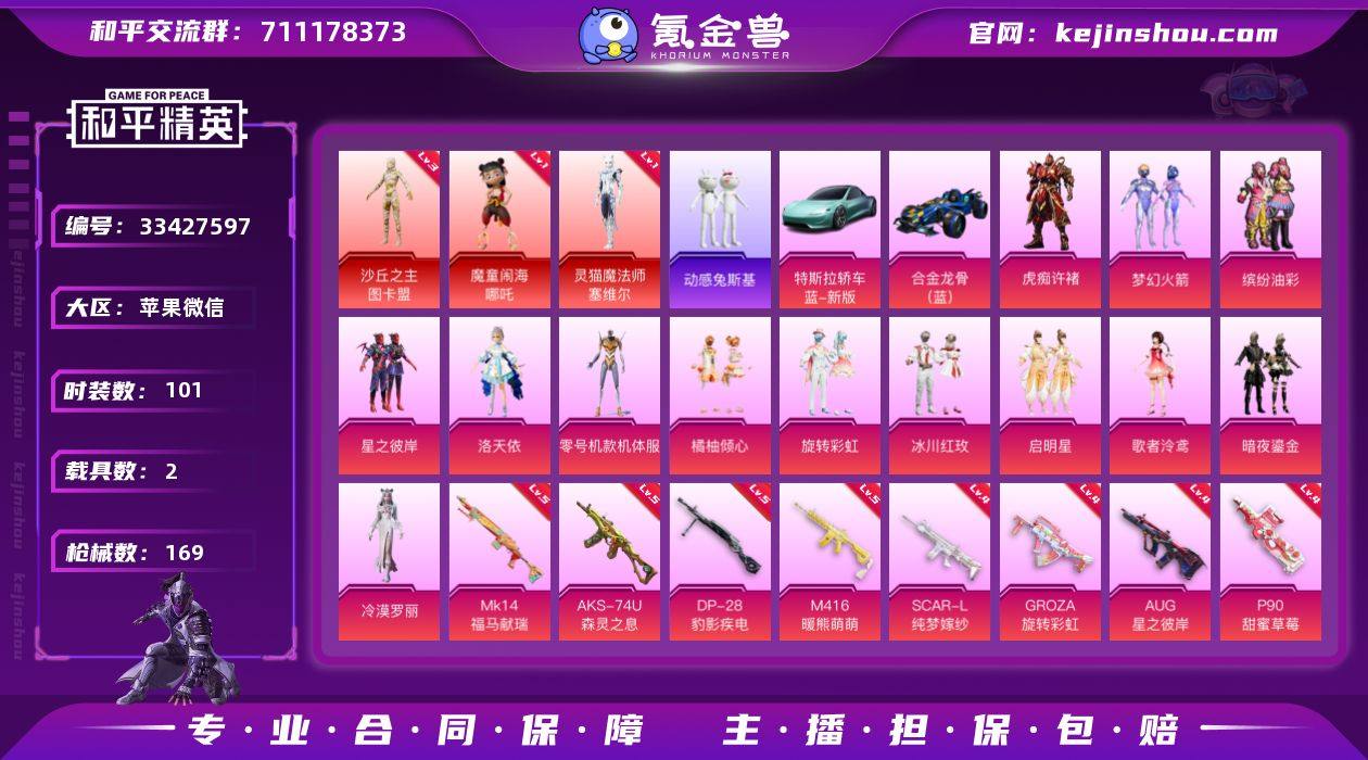 101套装/枪械21/装备247/载具2/战备106/王牌印记12/热力值67521/二级AKM-炫紫旋律/三级AKM-暮色玫影/一级SCAR-L-桃夭倾城/四级SCAR-L-纯梦嫁纱/三级SCAR-L-魔童闹海 哪吒/五级M416-暖熊萌萌/四级GROZA-旋转彩虹/四级AUG-星之彼岸/三级AUG-星梦奇缘/三级UMP45-启明星/五级AKS-74U-森灵之息/四级P90-甜蜜草莓/一级P90-沙丘之主/五级MK14-福马献瑞/四级AMR-鸢尾晶梦/二级M200-梦海之灵/一级AA12-G-萌骑幻想/二级DP-28-暗夜鎏金/五级DP-28-豹影疾电/四级MG3-洛神天依/三级燃烧瓶-薄荷可可/一级魔童闹海-哪吒/一级灵猫魔法师-塞维尔/三级沙丘之主-图卡盟/魔童闹海-哪吒/灵猫魔法师-塞维尔/沙丘之主-图卡盟/梦幻火箭(新101)/缤纷油彩/小丑鱼/暗夜行者/动感兔斯基/星之彼岸/洛天依/零号机款机体服/橘柚倾心/旋转彩虹/冰川红玫/启明星/歌者泠鸢/暗夜鎏金/冷漠罗丽/虎痴许褚/特斯拉Roadster(水滴蓝)/合金龙骨(蓝)/AKM炫紫旋律/AKM-暮色玫影/SCAR-L桃夭倾城/SCAR-L纯梦嫁纱/SCAR-L-魔童闹海 哪吒/M416暖熊萌萌/GROZA旋转彩虹/AUG星之彼岸/AUG星梦奇缘/UMP45启明星/AKS-74U-森灵之息/P90甜蜜草莓/P90沙丘之主/MK14-福马献瑞/AMR鸢尾晶梦/M200梦海之灵/AA12-G-萌骑幻想/DP-28暗夜鎏金/DP...