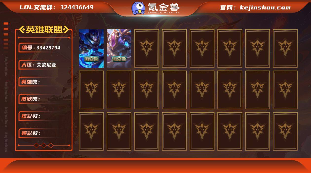 [18714528]3终极 4神话 72限定 37传说 94史诗 362皮肤 107炫彩 172英雄 可二次 可修改实名