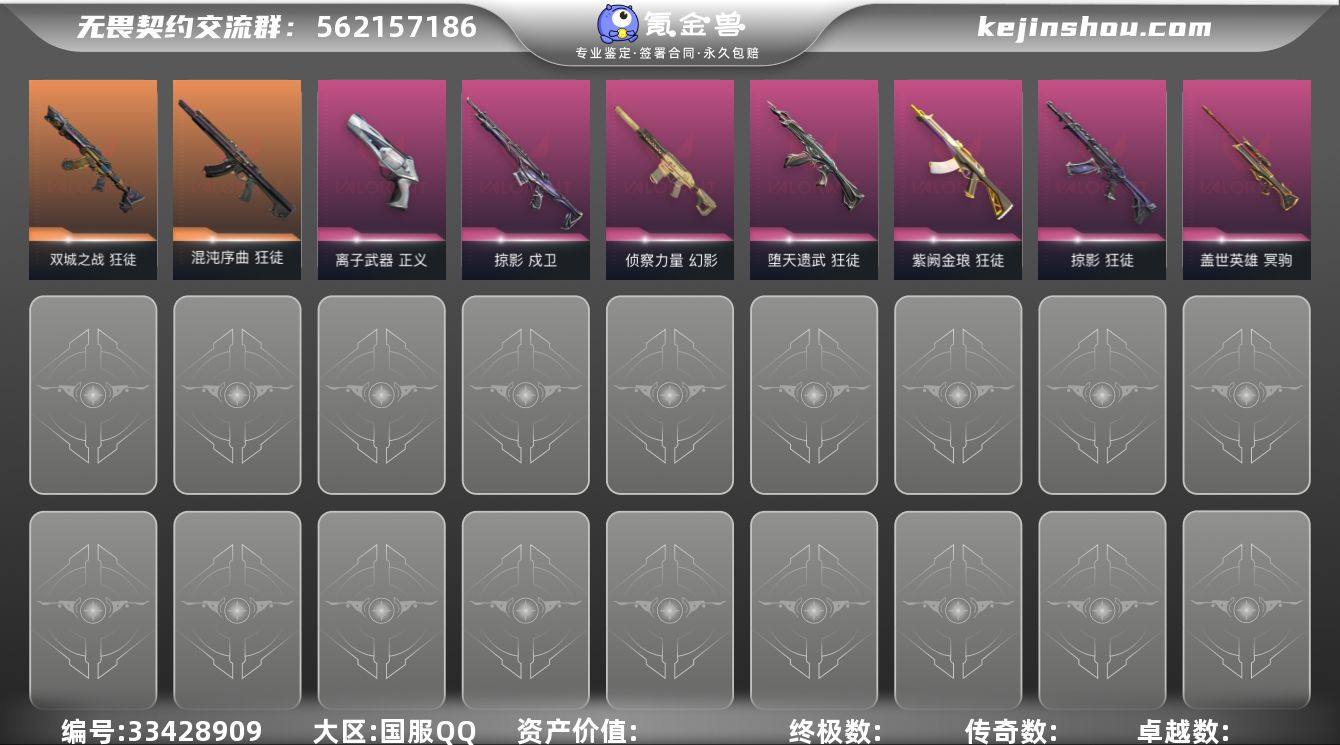 【sf514】【套装】:掠影套装,般若假面//2.0套装 【英雄】:幻棱,炼狱,维斯,暮蝶,壹决,铁臂,捷风,雷兹,幽影,不死鸟,贤者,猎枭,蝰蛇,零,芮娜,奇乐,尚勃勒,霓虹,斯凯,夜露,星礈,K/O,盖可,黑梦,钢锁 【近战武器】:近战武器-剥皮小刀,近战武器-RGX 11z Pro//3.0 爪刀,近战武器-鬼丸国纲,近战武器-流星兵团 短剑,近战武器-超能偶像 应援棒,近战武器-荒土机兵 热能刀,近战武器-影刃 【狂徒】:狂徒-混沌序曲,狂徒-双城之战,狂徒-塑水宗,狂徒-般若假面//2.0,狂徒-堕天遗武,狂徒-掠影,狂徒-紫阙金琅,狂徒-超能偶像,狂徒-荒土机兵,狂徒-流星兵团 【幻影】:幻影-侦察力量,幻影-聚合之力,幻影-纳米打击 【戍卫】:戍卫-掠影,戍卫-超能偶像,戍卫-逆冲蛮牛,戍卫-战术熊与伙伴们 【獠犬】:獠犬-般若假面//2.0,獠犬-采蜜小蜂队,獠犬-逆冲蛮牛 【冥驹】:冥驹-掠影,冥驹-盖世英雄,冥驹-荒土机兵 【飞将】:飞将-聚合之力,飞将-战术熊与伙伴们 【莽侠】:莽侠-纤云弄巧 【战神】:战神-般若假面//2.0,战神-采蜜小蜂队 【奥丁】:奥丁-流星兵团,奥丁-纳米打击 【判官】:判官-超能偶像,判官-采蜜小蜂队,判官-纳米打击x 【雄鹿】:雄鹿...