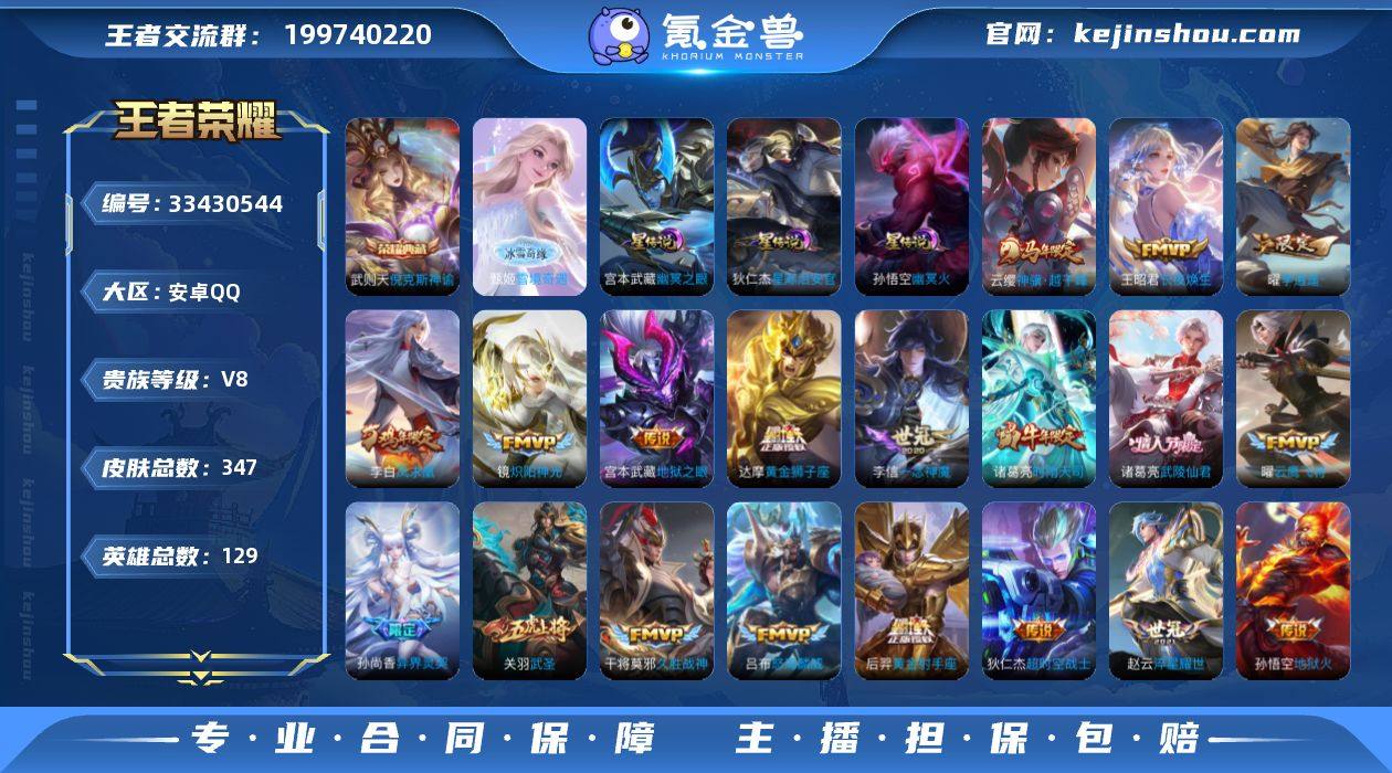 安卓q区69级精英收藏家, 万战金标赵云,全英雄 武则天/倪克斯神谕/东方不败,甄姬/雪境奇域,赵云/百木心枪/淬星耀世,弈星/滕王阁序,吕布/怒海麟威/末日机甲,孙尚香/异界灵契/蔷薇恋人,云缨/神骥越千峰,关羽/武圣/冰封战神,诸葛亮/时雨天司/武陵仙君,孙悟空/地狱火/幽冥火/至尊宝/大圣娶亲,宫本武藏/地狱之眼/幽冥之眼,干将莫邪/久胜战神/冰霜恋舞曲,曜/云鹰飞将/李逍遥,张良/黄金白羊座,后羿/黄金射手座/,达摩/黄金狮子座/拳皇,李信/一念神魔,李白/凤求凰/千年之狐,狄仁杰/超市空战士/鹰眼统帅/魔术师,王昭君/长夜幻生,虞姬/启明星使,镜/炽阳神光,上官婉儿/梁祝,不知火舞/魅语,东皇太一/逐梦之光,伽罗/天狼溯光者,元歌/无心/云间偶戏,公孙离/蜜橘之夏,典韦/蓝屏警告,司马懿/暗渊魔法,橘右京/修罗,澜/赏金猎手,盘古/憾世秧歌,猪八戒/猪悟能,百里守约/朱雀志/特工魅影,百里玄策/罗小黑/原初追猎者,老夫子/圣诞老人,花木兰/水晶猎龙者,莱西奥/光戈星穹,蒙犽/狂想萌偶曲喵,裴擒虎/天狼猎兽者/李小龙,