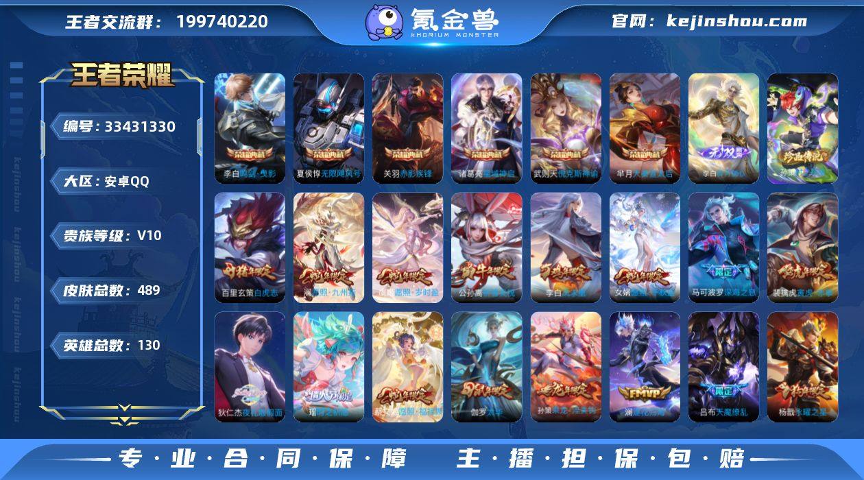 【WZ182582】安卓Q-V10-至尊星耀IV段位-130英雄-489皮肤-6典藏皮肤-1典藏英雄-1无双-1珍品传说-51传说-163史诗【英雄全皮】:嬴政全皮,刘邦全皮,孙权全皮,猪八戒全皮,敖隐全皮,阿古朵全皮,戈娅全皮,空空儿全皮,影全皮【荣耀典藏】:武则天英雄,武则天倪克斯神谕,夏侯惇无限飓风号,芈月大秦宣太后,李白鸣剑曳影,诸葛亮星域神启,关羽赤影疾锋【无双皮肤】:李白碎月剑心【珍品传说】:孙策时之奇旅【传说皮肤】:女娲愿照千秋盛,澜愿照九州拓,蔡文姬愿照福禄聚,虞姬愿照岁时盈,云缨幻光神枪,嬴政玄雷天君,王昭君映山客,桑启鸣野蒿,墨子黄金天蝎座,孙尚香乘龙问璇玑,孙策乘龙淬吴钩,赵云乘龙铭钟鼎,澜逐花归海,艾琳觅芳踪,狄仁杰夜礼服假面,不知火舞绯月行,马可波罗深海之息,孙策末日机甲,瑶时之祈愿,裴擒虎寅虎赤拳,鲁班七号寅虎瑞焰,孙尚香异界灵契,貂蝉遇见胡旋,西施游龙清影,周瑜音你心动,小乔音你心动,李元芳飞鸢探春,公孙离祈雪灵祝,铠绛天战甲,虞姬启明星使,孙悟空零号赤焰,关羽武圣,曜云鹰飞将,李信一念神魔,刘备时之恋人,伽罗太华,张良黄金白羊座,干将莫邪久胜战神,虞姬云霓雀翎,达摩黄金狮子座,百里玄策白虎志...