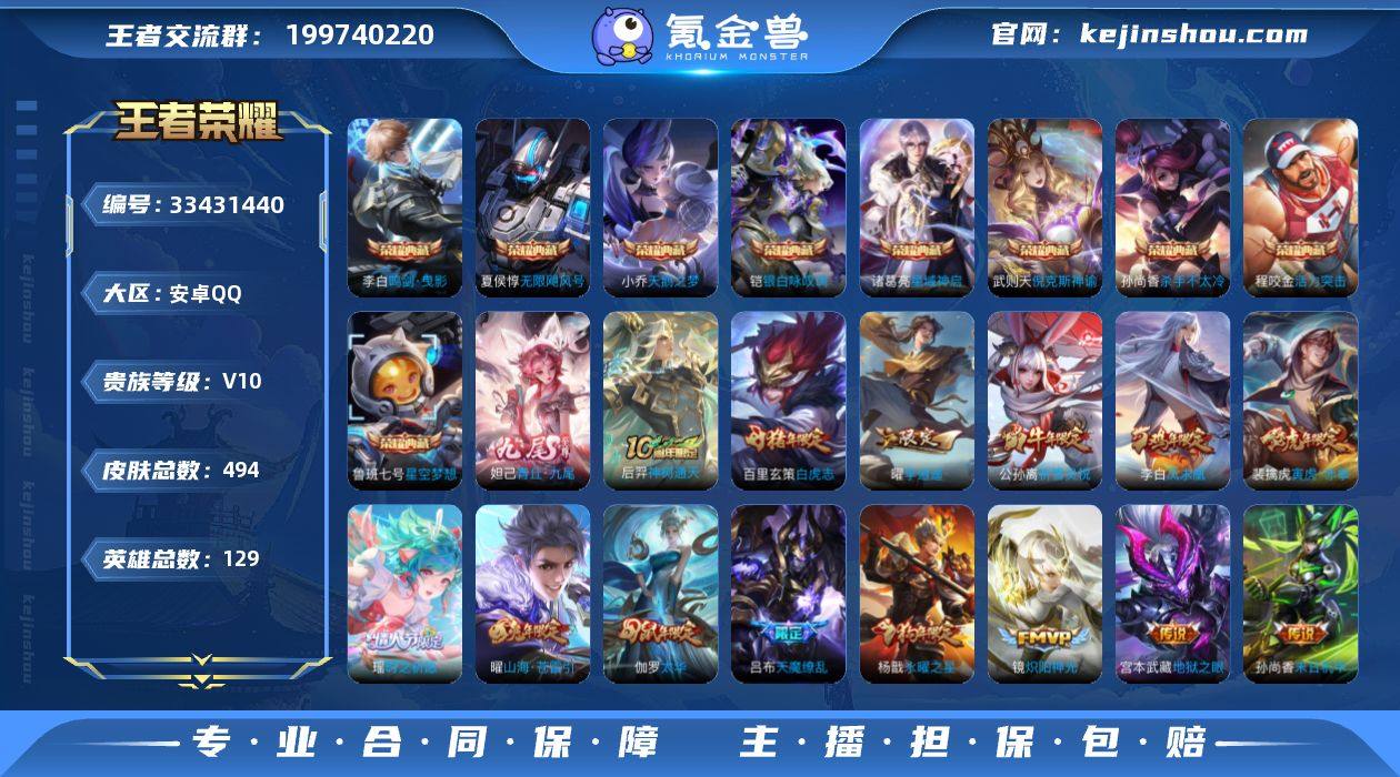 【WZ182592】安卓Q-V10-至尊星耀IV段位-129英雄-494皮肤-9典藏皮肤-1典藏英雄-1无双-54传说-165史诗【英雄全皮】:刘邦全皮,孙权全皮,梦奇全皮,猪八戒全皮,敖隐全皮【荣耀典藏】:武则天英雄,武则天倪克斯神谕,夏侯惇无限飓风号,小乔天鹅之梦,孙尚香杀手不太冷,鲁班七号星空梦想,程咬金活力突击,李白鸣剑曳影,诸葛亮星域神启,铠银白咏叹调【无双皮肤】:妲己青丘九尾【传说皮肤】:后羿神树通天,云缨幻光神枪,艾琳觅芳踪,伽罗炽翼辉光,孙悟空齐天大圣,曜山海苍雷引,李白诗剑行,狄仁杰神器狴犴令,蔡文姬花朝如约,女娲补天,孙策末日机甲,瑶时之祈愿,裴擒虎寅虎赤拳,鲁班七号寅虎瑞焰,孙尚香异界灵契,貂蝉遇见胡旋,赵云淬星耀世,王昭君乞巧织情,西施游龙清影,曜李逍遥 ,周瑜音你心动,小乔音你心动,李元芳飞鸢探春,兰陵王默契交锋,公孙离祈雪灵祝,诸葛亮时雨天司,铠绛天战甲,镜炽阳神光,虞姬启明星使,孙悟空零号赤焰,关羽武圣,曜云鹰飞将,李信一念神魔,刘备时之恋人,伽罗太华,貂蝉猫影幻舞,张良黄金白羊座,干将莫邪久胜战神,虞姬云霓雀翎,达摩黄金狮子座,百里玄策白虎志,花木兰冠军飞将,梦奇胖达荣荣,后羿黄金射手座,杨...