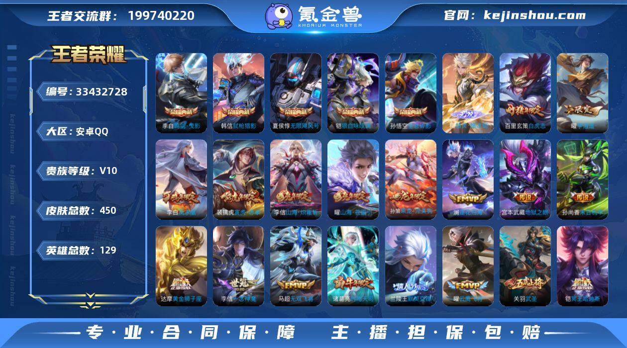 【WZ182487】安卓Q-V10-至尊星耀IV段位-129英雄-450皮肤-5典藏皮肤-1无双-42传说-152史诗【英雄全皮】:刘邦全皮,橘右京全皮,猪八戒全皮,曜全皮,赵怀真全皮,空空儿全皮,影全皮,海诺全皮【荣耀典藏】:孙悟空全息碎影,夏侯惇无限飓风号,李白鸣剑曳影,铠银白咏叹调,韩信弑枪猎影【无双皮肤】:曜器灵螭龙剑【传说皮肤】:桑启鸣野蒿,铠冥王哈迪斯,孙策乘龙淬吴钩,澜逐花归海,艾琳觅芳踪,澜电玩雷克斯,虞姬无限倾心,项羽无限倾心,孙悟空齐天大圣,曜山海苍雷引,李信山海炽霜斩,吕布怒海麟威,李白诗剑行,橘右京枫霜尽,马超无双飞将,孙策挚爱之约,孙策末日机甲,裴擒虎寅虎赤拳,孙尚香异界灵契,赵云淬星耀世,曜李逍遥 ,兰陵王默契交锋,诸葛亮时雨天司,铠绛天战甲,虞姬启明星使,孙悟空零号赤焰,关羽武圣,曜云鹰飞将,李信一念神魔,刘备时之恋人,张良黄金白羊座,干将莫邪久胜战神,虞姬云霓雀翎,达摩黄金狮子座,百里玄策白虎志,花木兰冠军飞将,后羿黄金射手座,李白凤求凰,孙尚香末日机甲,宫本武藏地狱之眼,孙悟空地狱火,狄仁杰超时空战士【限定皮肤】:铠冥王哈迪斯,暃埋骨钱,蒙犽顽岩魄,蔡文姬夏日便利店,大乔绒语心约,虞姬夏...