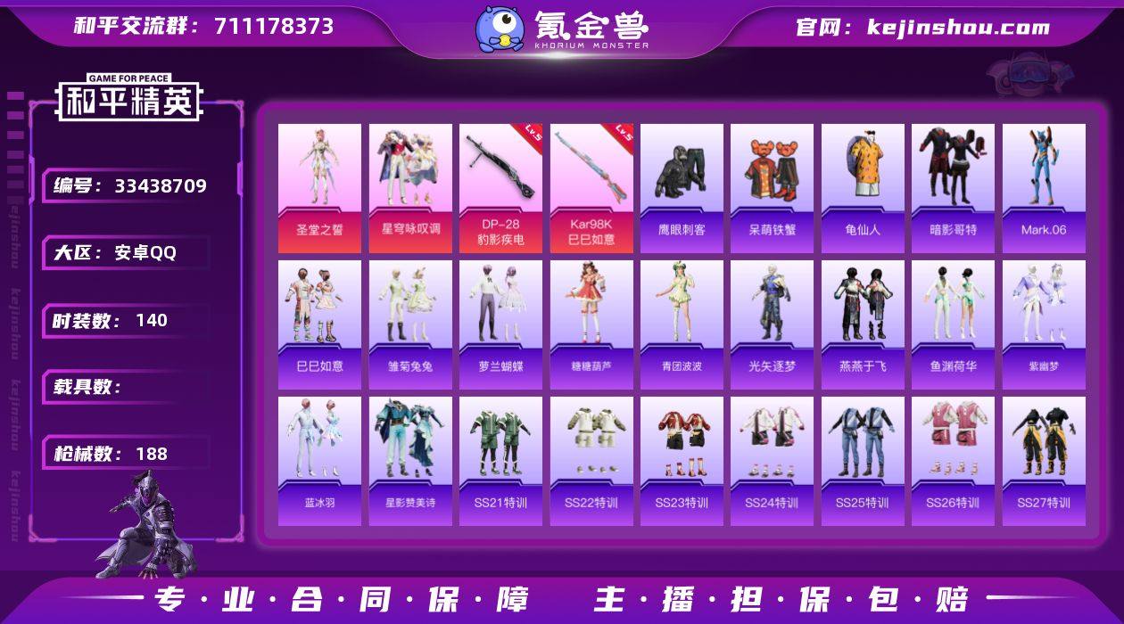 安卓 手Q-2粉装-2特效枪-0载具-1粉色飞行器-47948热力值-14王牌印记-140套装-188枪皮HZ2641310 【热门品类】:套装-龟仙人,套装-暗影哥特,角色-Mark.06 【粉色套装】:角色-圣堂之誓,粉装-星穹咏叹调 【粉色枪皮等级】:Kar98K-巳巳如意(五级),DP-28-豹影疾电(五级) 【粉色枪皮】:Kar98K-巳巳如意,DP-28-豹影疾电 【粉色飞行器】:炫彩糖果飞行器 【粉色降落伞】:青空秋雨降落伞,精灵梦叶罗丽降落伞,炫彩糖果降落伞 【稀有套装】:套装-龟仙人,套装-巳巳如意,套装-雪国风尚,套装-炫彩糖果,套装-雏菊兔兔,套装-萝兰蝴蝶,套装-糖糖葫芦,套装-青团波波,角色-光矢逐梦,套装-燕燕于飞,套装-鱼渊荷华,套装-紫幽梦,套装-蓝冰羽,套装-星影赞美诗 【稀有枪皮】:AUG-冰晶雪宝,AKM-彩虹符号,AKM-影袭,AKM-破晓战魂,AKM-霓虹街区,AKM-龙的传人,M16A4-幻世战舞者,SCAR-L-炫彩节奏,SCAR-L-玉兔迎春,M416-糯团青竹,M416-红色方程式,M416-蓝色火焰,GROZA-彩虹符号,GROZA-影袭,GROZA-懵萌河马,GROZA-田园牧歌,AUG-天降萌叽,AUG-耀粉歌者,AUG-青春冒险家,QBZ-彩虹符号,M762-天星战神,M762-天降萌叽,Mk47-妙红点点,G36C-懵萌河马,AC-VAL-天降萌叽...