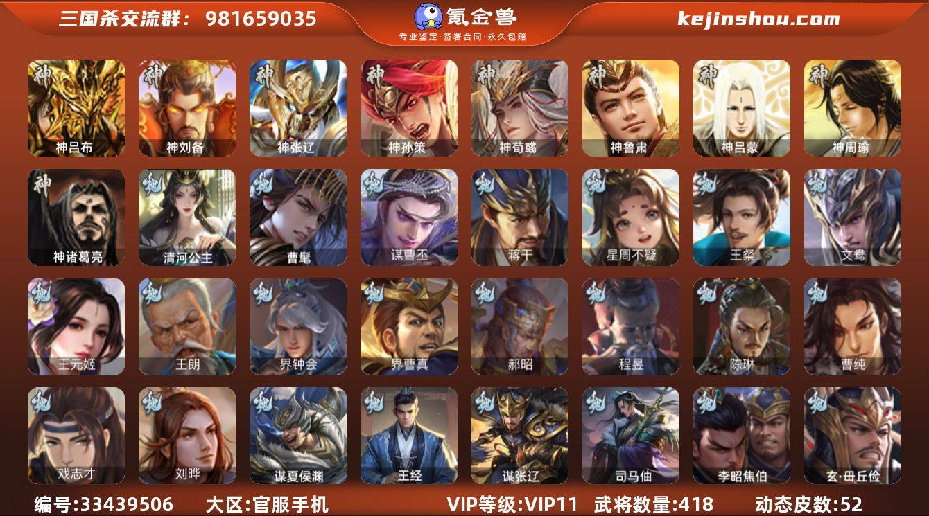 神吕布,神刘备,神张辽,神孙策,神荀彧,神诸葛亮,神鲁肃,曹髦,星周不疑,王粲,王元姬,王朗,界钟会,界曹真,郝昭,陈琳,曹纯,戏志才,刘晔,谋曹丕,蒋干,清河公主,程昱,谋诸葛亮,谋赵云,谋马超,诸葛瞻,赵襄,张星彩,沙摩柯,谯周,花鬘,鲍三娘,谋黄盖,吴景,孙皓,孙寒华,界朱然,界徐盛,界步练师,贺齐,势陆郁生,文鸯,裴秀,左慈,郑玄,张让,星黄忠,审配,麹义,庞德公,刘焉,界左慈,界李儒,公孙康,杜预,卑弥呼,谋张角,星董卓,兀突骨,神吕蒙,神周瑜,势夏侯尚,SP关羽,SP曹仁,SP蔡文姬,乐进,曹昂,诸葛诞,朱灵,文聘,SP姜维,张春华,钟会,曹冲,郭淮,满宠,界王异,界曹操,界司马懿,界夏侯惇,界张辽,界许褚,界郭嘉,李典,曹真,韩浩史涣,陈群,曹叡,曹休,钟繇,司马朗,王基,李通,郭皇后,孙资刘放,辛宪英,吕虔,鲁芝,蒯越蒯良,界荀彧,杜畿,界邓艾,张恭,界曹植,界曹彰,界满宠,界郭淮,卞夫人,华歆,蔡贞姬,袁涣,王双,崔琰,毛玠,阮慧,谋徐晃,谋于禁,谋荀彧,界曹休,牵招,成济,玄毌丘俭,李昭焦伯,司马孚,王经,司马伷,谋张辽,...