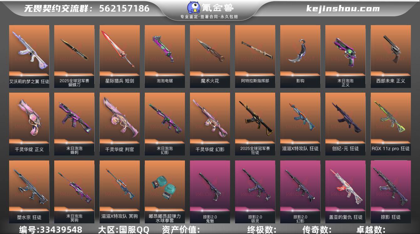 段位: 黄金 套装: 掠影2.0套装,滋滋X特工队,2025全球冠军赛,末日泡泡套装 近战武器皮肤: 阿特拉斯指挥部,影钩-掠影2.0,魔术火花-奇幻朋克3.0,泡泡电锯,星际猎兵 短剑,2025全球冠军赛 蝴蝶刀,嘟昂嘟昂超弹力水球拳套-滋滋X特攻队 步枪皮肤: 狂徒-盖亚的复仇,狂徒-塑水宗,幻影-千灵华绽,狂徒-艾沃莉的梦之翼,狂徒-掠影,狂徒-创·纪元,狂徒-RGX 11z pro,幻影-掠影2.0,狂徒-滋滋X特攻队,幻影-末日泡泡,2025全球冠军赛 狂徒 佩枪皮肤: 正义-千灵华绽,正义-西部未来,鬼魅-掠影2.0,正义-末日泡泡,蒙太奇 狂怒 狙击枪皮肤: 冥驹-堕天遗武,冥驹-滋滋X特攻队,冥驹-末日泡泡 冲锋枪皮肤: 骇灵-掠影2.0,蜂刺-末日泡泡 霰弹枪皮肤: 判官-千灵华绽 机枪皮肤: 奥丁-掠影2.0