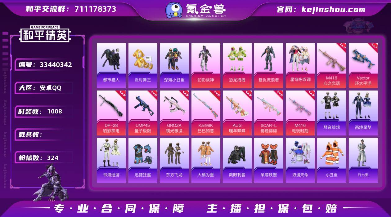 【特价出售】钱包不能注销安卓Q-5稀有4粉装11特效枪24热门257套装324枪皮 100328热力值 21印记 历史超级王牌18星 【5稀有】 AKM-缤纷海域 都市猎人 浪漫天命 派对舞王 派对舞王(金靴子) 【4粉装】 星穹咏叹调 幻影战神 恐龙拽拽 复仇流浪者 【11特效枪】 SCAR-L-锦绣绵绵 (5级) M416-心之恋语 (7级) M416-电玩时刻 (5级) Kar98K-巳巳如意 (5级) DP-28-豹影疾电 (5级) AUG-暖羊咩咩 (5级) UMP45-量子极限 (5级) GROZA-镜光银凌 (5级) Mk14-福马献瑞 (5级) AA12-G-萌骑幻想 (5级) Vector-环太平洋 (7级) 【24热门】 Mark.06 小丑鱼 龟仙人 暗夜之虎 东方飞龙 呆萌铁蟹 鹰眼刺客 暗夜之虎 迅捷狂鲨 深海小丑鱼 大橘为重 NV战队服 诡面顽熊 团圆交子 瑞龙福将 漫步者 薄荷蓝莓 朱雀圣者 破蛋小黄鸡 极速红龙 军刀雅典娜 英勇保护者 弄潮海豚 M762-瑞龙福将 【1飞行器】 闪光银龙飞行器 【2头盔】 幻影战神头盔 深海小丑鱼头盔 【2背包】 幻影战神背包 深海小丑鱼背包