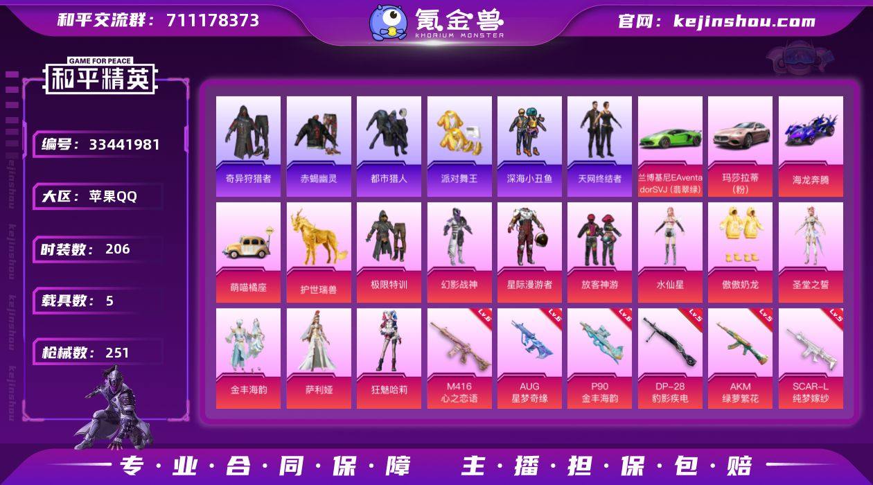 206套装/枪械16/装备353/载具5/战备164/王牌印记10/热力值89780/五级AKM-绿萝繁花/五级SCAR-L-纯梦嫁纱/五级SCAR-L-锦绣绵绵/六级M416-心之恋语/三级M416-天马神君/六级AUG-星梦奇缘/五级Famas-初号机 觉醒Ver./五级AKS-74U-森灵之息/六级P90-金丰海韵/五级Kar98K-巳巳如意/五级Mk14-福马献瑞/二级AA12-G-萌骑幻想/五级DP-28-豹影疾电/一级信号枪-金乌曜日/六级燃烧瓶-天降桃花/六级破片手榴弹-贪吃小熊/赤蝎幽灵/都市猎人/派对舞王/深海小丑鱼/小丑鱼/奇异狩猎者/天网终结者/忍者信条/龟仙人/潮萌小黄鸭/8号机/M416-星际漫游/熔岩游骑兵连帽夹克/极限特训/幻影战神/星际漫游者/放客神游/水仙星/傲傲奶龙/圣堂之誓/金丰海韵/萨利娅/狂魅哈莉/角色-罪夜之冕/人物-小舞·灵珑/人物-小舞·雪昙/人物-小舞·恋语/角色-虎痴许褚/兰博基尼Aventador SVJ(翡翠绿)/玛莎拉蒂Ghibli(粉)/海龙奔腾/萌喵橘座/护世瑞兽/AKM绿萝繁花/SCAR-L纯梦嫁纱/SCAR-L-锦绣绵绵/M416心之恋语/M416-天马神君/AUG星梦奇缘/Famas-初号机 觉醒Ver./AKS-74U-森灵之息/P90-金丰海韵/Kar98K-巳巳如意/Mk14-福马献瑞/AA12-G-萌骑幻想/DP-28-豹影疾电/信号枪-金乌曜日/燃烧瓶-天降桃花/破片手榴弹-贪吃小熊/酣梦熊熊...