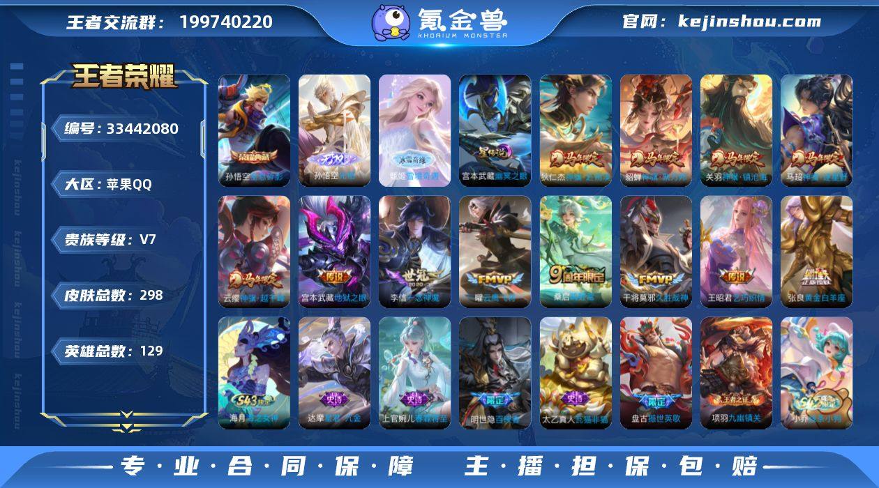 王者20898,无二次,,钱包已注销,苹果Q-V7-至尊星耀V段位-129英雄-298皮肤-1典藏皮肤-2无双-12传说-92史诗 【英雄全皮】:敖隐全皮 【荣耀典藏】:孙悟空全息碎影 【无双皮肤】:孙悟空无相,甄姬雪境奇遇 【传说皮肤】:云缨神骥越千峰,关羽神骥镇沧海,狄仁杰神骥赴朔漠,貂蝉神骥聚万邦,马超神骥逐星野,桑启鸣野蒿,王昭君乞巧织情,曜云鹰飞将,李信一念神魔,张良黄金白羊座,干将莫邪久胜战神,宫本武藏地狱之眼 【限定皮肤】:大乔绒语心约,虞姬夏日便利店,姜子牙天穹之誓,杨戬破阵退雄兵,李白谪仙醉月,狄仁杰阴阳师,赵云皇家上将,墨子神迹守卫,孙尚香蔷薇恋人,庄周高山流水,高渐离死亡摇滚,高渐离玩趣恶龙,钟无艳超时空战士,白起夜都怪侠,芈月幻夜卜梦,吕布猎兽之王,吕布御风骁将,元歌云间偶戏,元歌无心,甄姬游园惊梦,甄姬落雪兰心,典韦蓝屏警告,马可波罗暗影游猎,狄仁杰魔术师,狄仁杰万华元夜,达摩星际陆战队,达摩沙漠行僧,项羽海滩派对,老夫子醍醐杖,老夫子航海奇遇记,程咬金演武夺筹,王昭君午后时光,兰陵王金庭之子,亚瑟潮玩骑士王,孙悟空大圣娶亲,孙悟空孙行者,后羿圣弓游侠,李元芳云中旅人,虞姬霸王别姬,钟馗驱傩正...