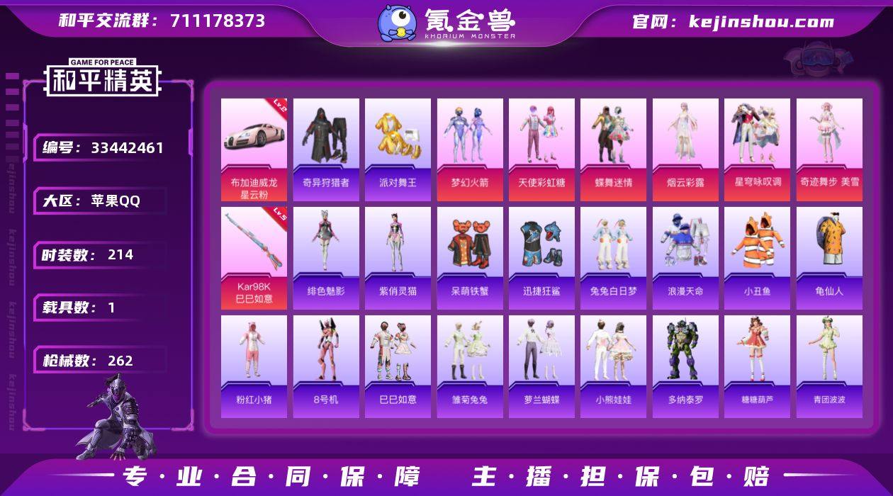 214套装/枪械3/装备328/载具1/战备210/王牌印记13/热力值81041/五级UMP45-萌骑冒险/五级Kar98K-巳巳如意/一级Mk14-福马献瑞/二级布加迪威龙(星云粉)/梦幻火箭(新101)/浪漫天命/派对舞王/小丑鱼/奇异狩猎者/龟仙人/粉红小猪/8号机/天使彩虹糖/蝶舞迷情/烟云彩露/星穹咏叹调/奇迹舞步-美雪/布加迪威龙(星云粉)/UMP45-萌骑冒险/Kar98K-巳巳如意/Mk14-福马献瑞/炫彩糖果飞行器/梦幻火箭飞行器/绝对恒星降落伞/梦幻火箭降落伞/神秘黑猫降落伞/古堡领主降落伞/心之恋语降落伞/锦绣火鲤降落伞/流星咚咚降落伞/碧影闪光降落伞/筑梦精灵降落伞/星夜魔法师降落伞/彩虹甜喵降落伞/旋转彩虹降落伞/歌者泠鸢降落伞/暗夜鎏金降落伞/第五大道降落伞/精灵梦叶罗丽降落伞/魔法神域降落伞/金丰海韵降落伞/拳皇·狂花道降落伞/千金淑猫降落伞/鬼刀降落伞/星穹咏叹调降落伞/无垠阁降落伞/异瞳寒姬降落伞/炫彩糖果降落伞/鸢尾珑雾降落伞/六号石头人飞行器/巳巳如意/炫彩糖果/套装-迅捷龙虾/雏菊兔兔/萝兰蝴蝶/小熊娃娃/多纳泰罗/糖糖葫芦/青团波波/都市丽猫/燕燕于飞/鱼渊荷华/晶辉守护/粉恋花/紫幽梦/蓝冰羽/星渊小夜曲/绯色魅影/紫俏灵猫/套装-雨过天青/套装-红釉青花/角色-枫露凝珀/AUG-冰晶雪宝/...