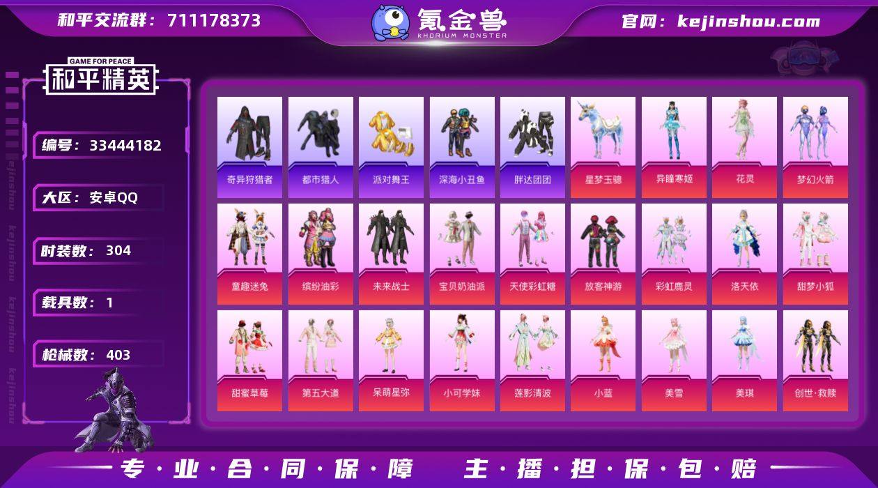 11260精品妹妹号 25粉23特1载具 派对舞王 都市猎人 暗影哥特 红熊茄茄 甜蜜草莓 甜梦小狐 梦幻火箭 猪妹 led眼罩 星空马 安卓 手Q-25粉装-23特效枪-1载具-6粉色飞行器-138604热力值-22王牌印记-304套装-403枪皮 【热门品类】:粉装-梦幻火箭,粉装-童趣迷兔,粉装-缤纷油彩,套装-浪漫天命,套装-都市猎人,套装-派对舞王,套装-深海小丑鱼,套装-小丑鱼,套装-奇异狩猎者,套装-胖达团团,套装-金羽特工,套装-龟仙人,套装-暗影哥特,套装-粉红小猪,角色-8号机,角色-Mark.06,套装-红熊茄茄 【粉色套装】:粉装-未来战士,粉装-宝贝奶油派,粉装-天使彩虹糖,粉装-梦幻火箭,粉装-缤纷油彩,粉装-放客神游,粉装-童趣迷兔,粉装-彩虹鹿灵,角色-洛天依,粉装-甜梦小狐,粉装-甜蜜草莓,粉装-第五大道,角色-呆萌星弥,角色-小可学妹,粉装-莲影清波,角色-小蓝,角色-美雪,角色-美琪,套装-创世·救赎,角色-初号机 觉醒Ver.,粉装-金丰海韵,角色-萨利娅,粉装-幻彩电音,角色-花灵,角色-异瞳寒姬 【粉色枪皮等级】:AKM-梦之光华(七级),AKM-绿萝繁花(五级),SCAR-L-童趣迷兔(七级),SCAR-L-锦绣绵绵(五级),M416-暖熊萌萌(五级),M416-电玩时刻(五级),GROZA-巴啦啦小...
